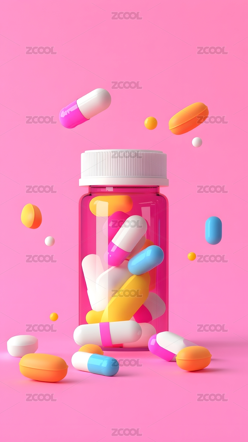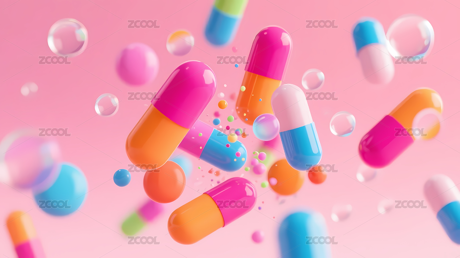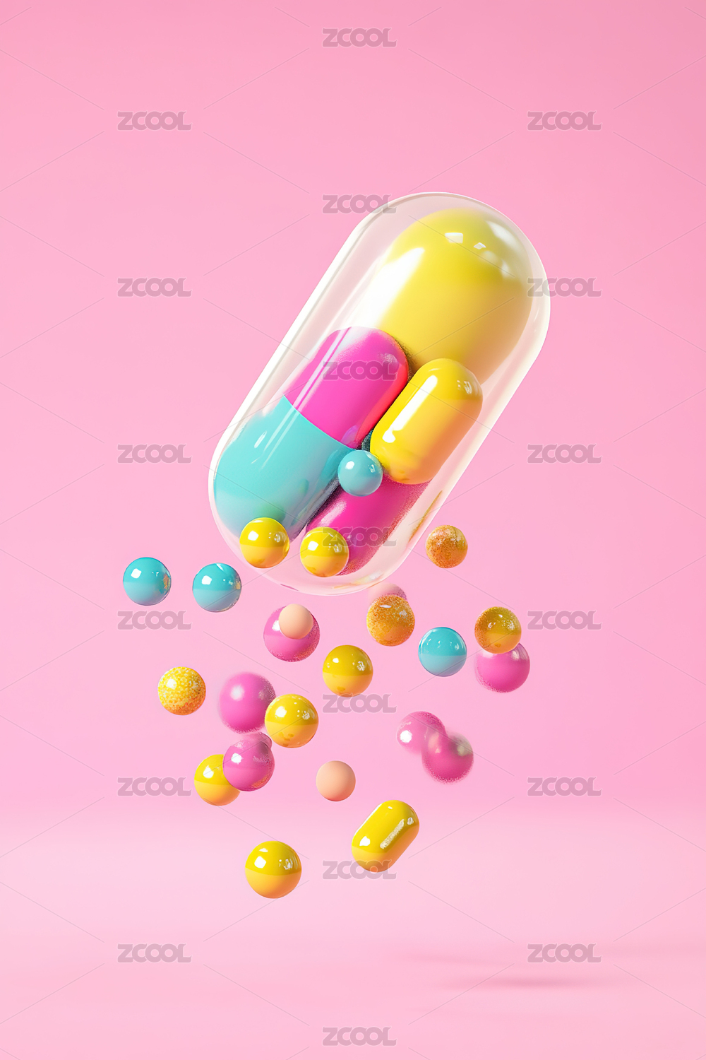 高清彩色药丸3D渲染图