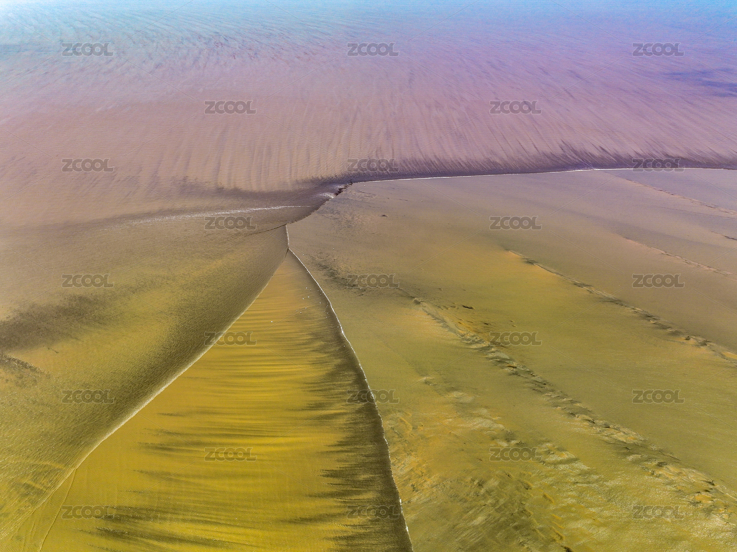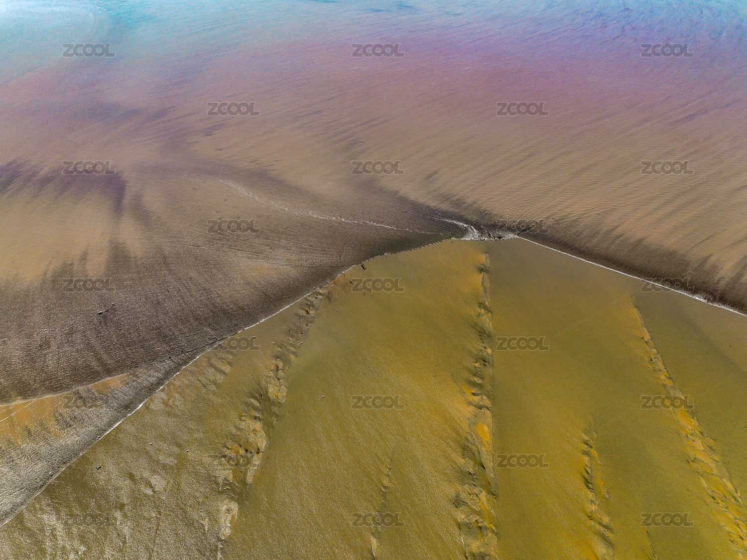 黄河沙滩河水干旱呈现唯美自然图案