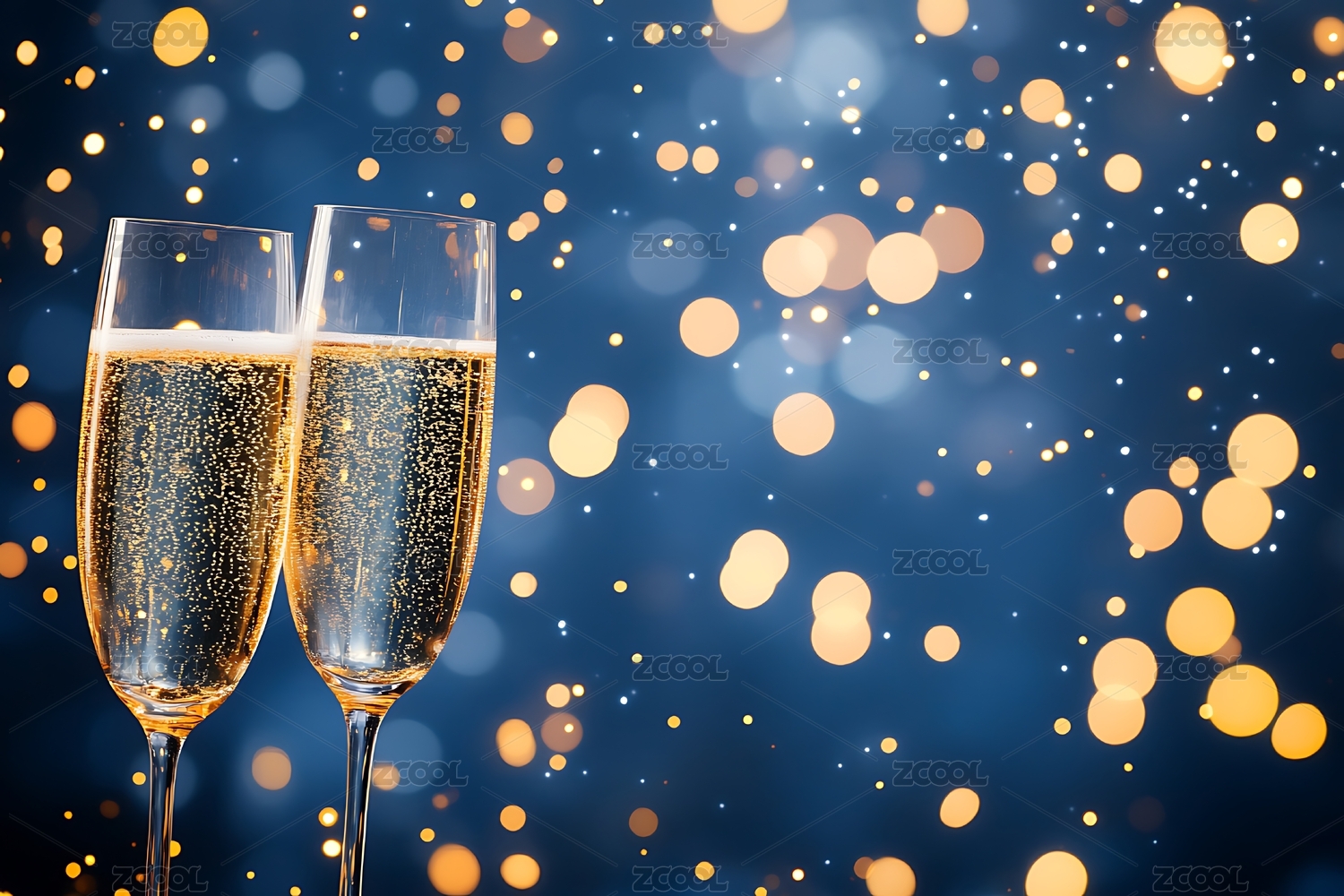 两杯香槟酒新年庆祝背景