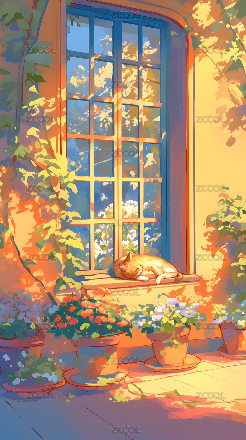 插画,艺术,宁静,自然,植物,AIGC,AI绘画,阳光,绿植,室内
