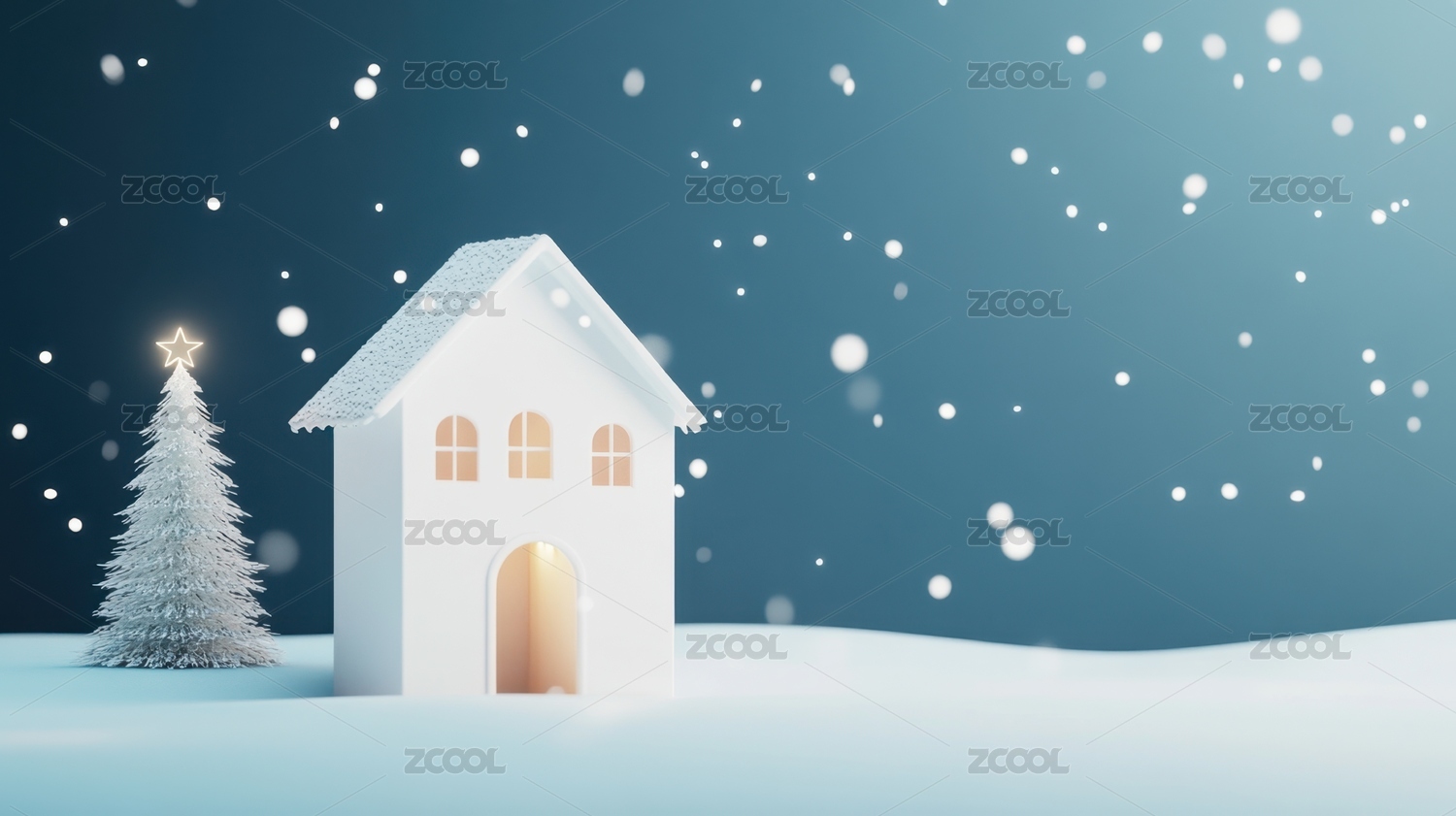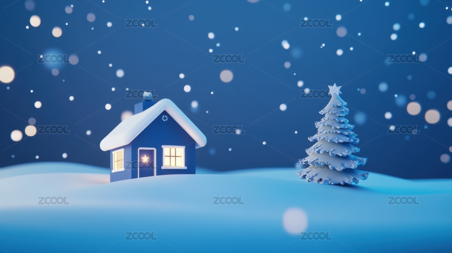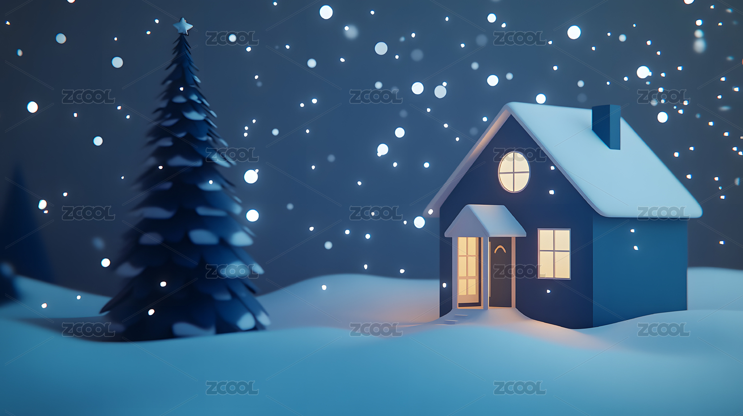灯光,三维立体,3D,小屋,冬季,雪景,温暖,节日,梦幻,雪