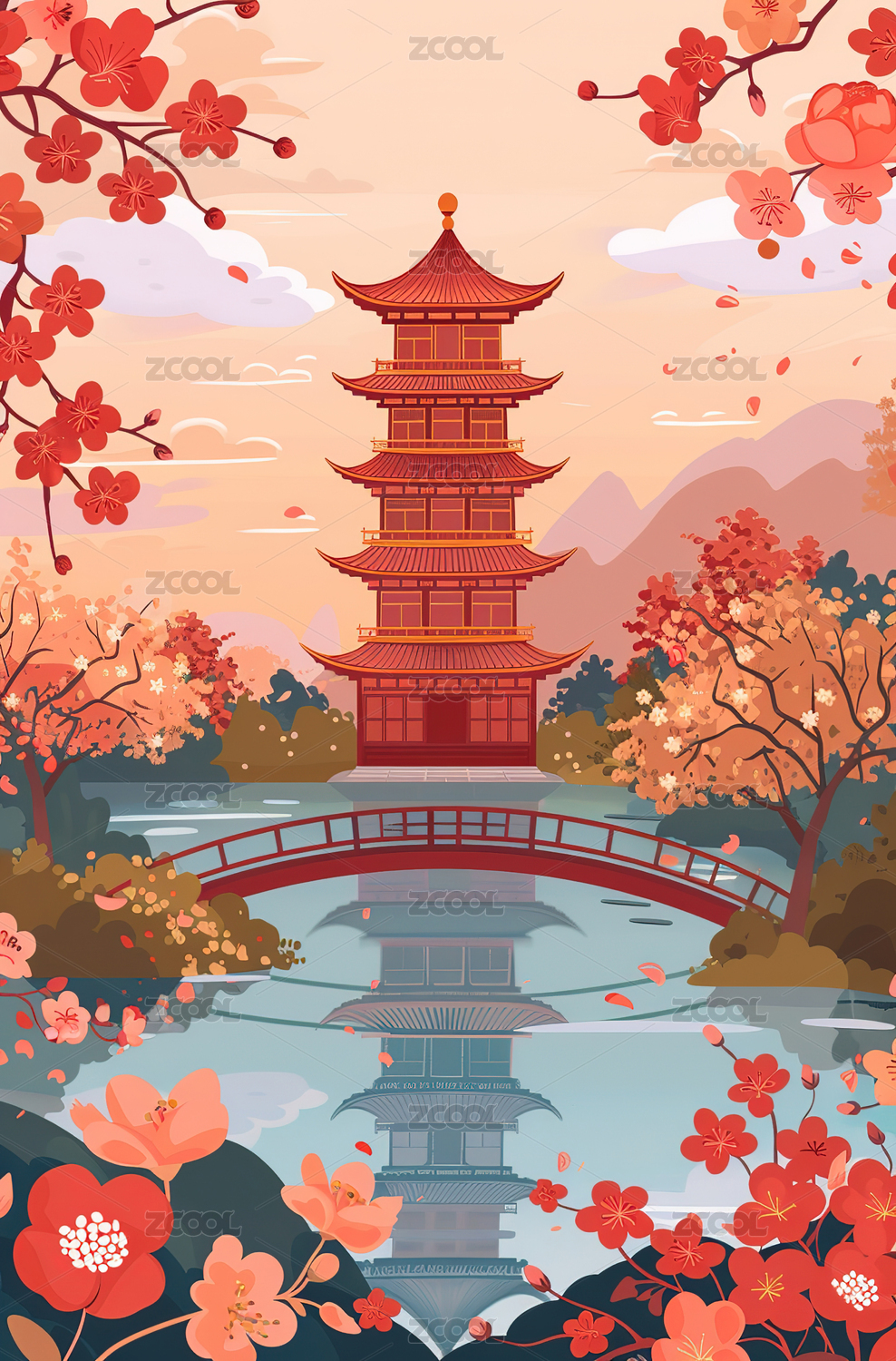 树木,绘画,艺术,自然,风景,插画,宁静,祥和,粉色,浪漫