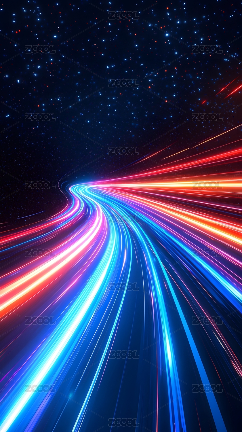 流光溢彩的公路发光彩色速度线黑色背景插画