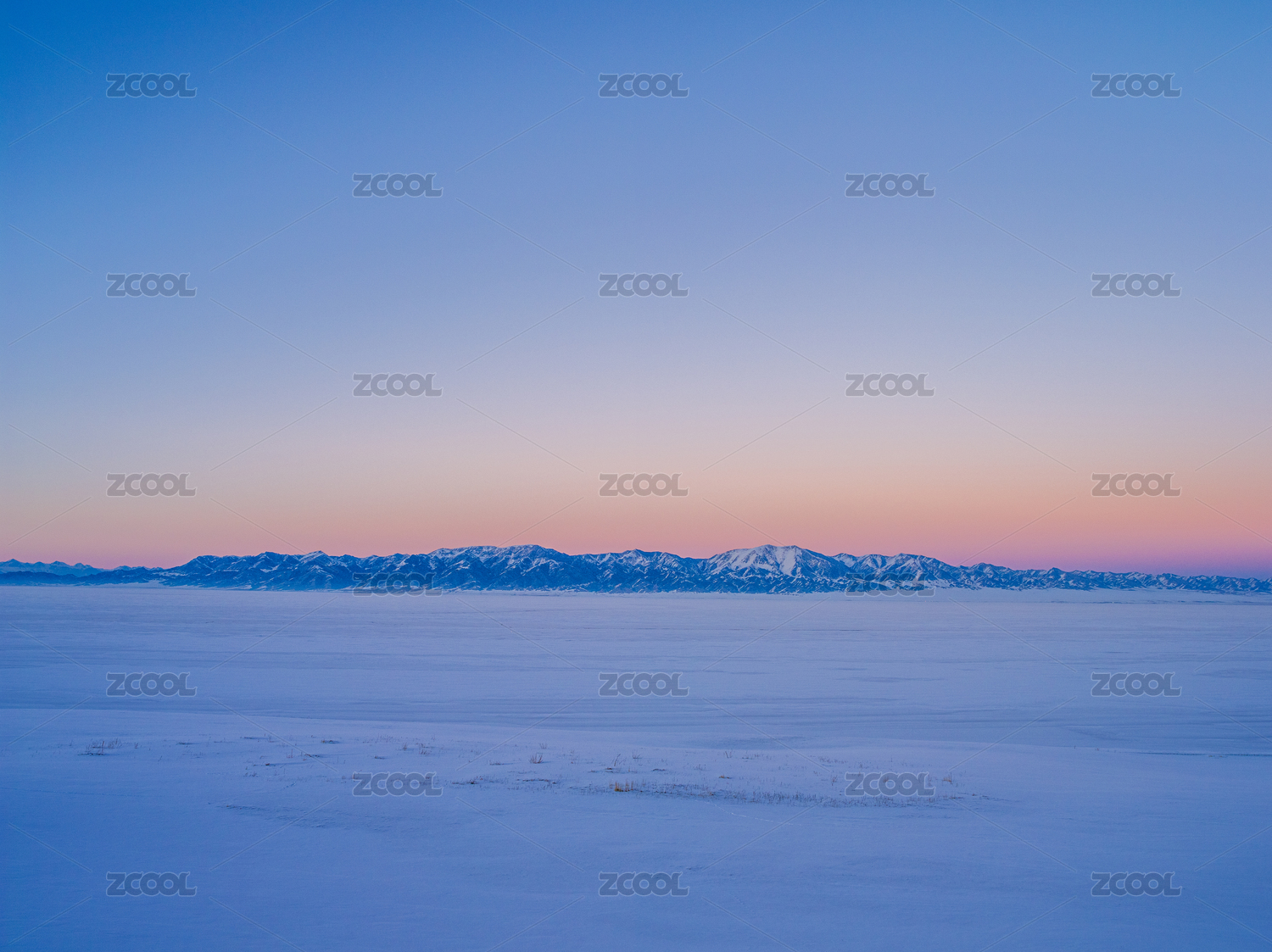 蓝天下白雪皑皑的呼伦贝尔大草原