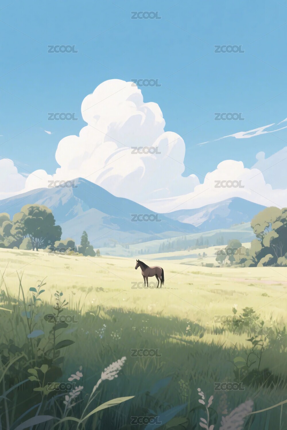 风景画,山峰,云雾,绘画,骑马,风景,艺术,自然,宁静,天空
