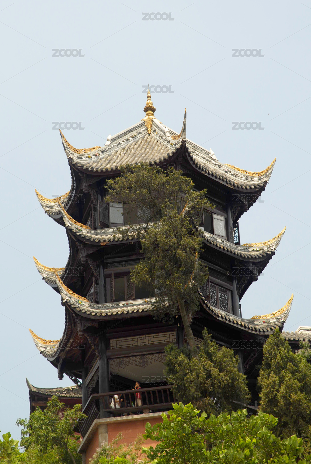 四川成都洛带古镇客家纪念塔 四方塔木塔