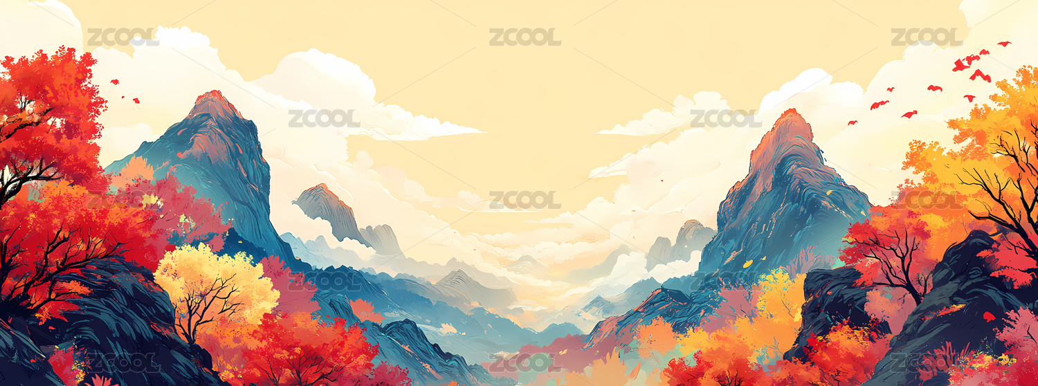 艺术,壁纸,插画,自然,唯美,国风,意境,写意,水彩,秋景