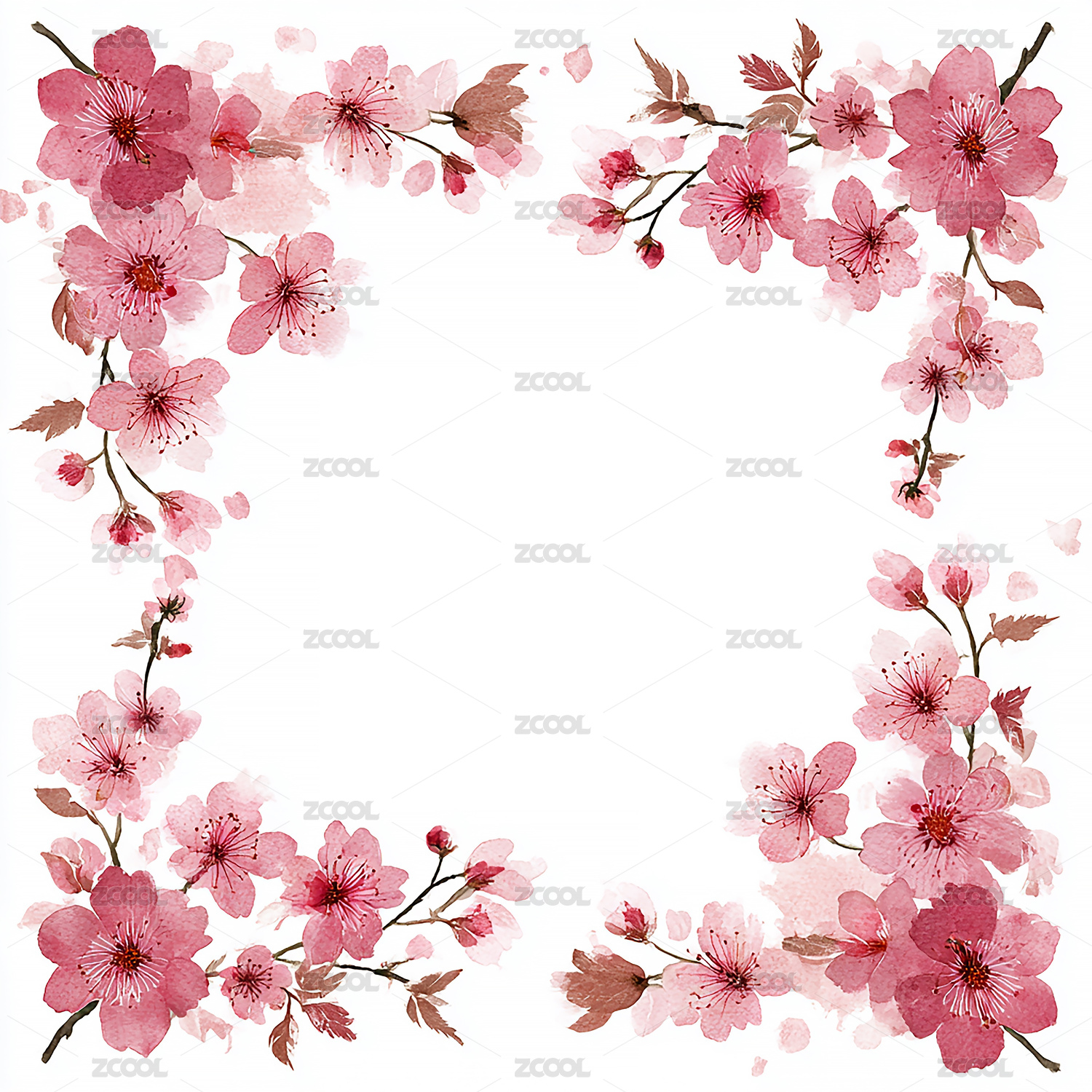 插画,绘画,留白,简约,极简,边框,花,花朵,清新,浅色