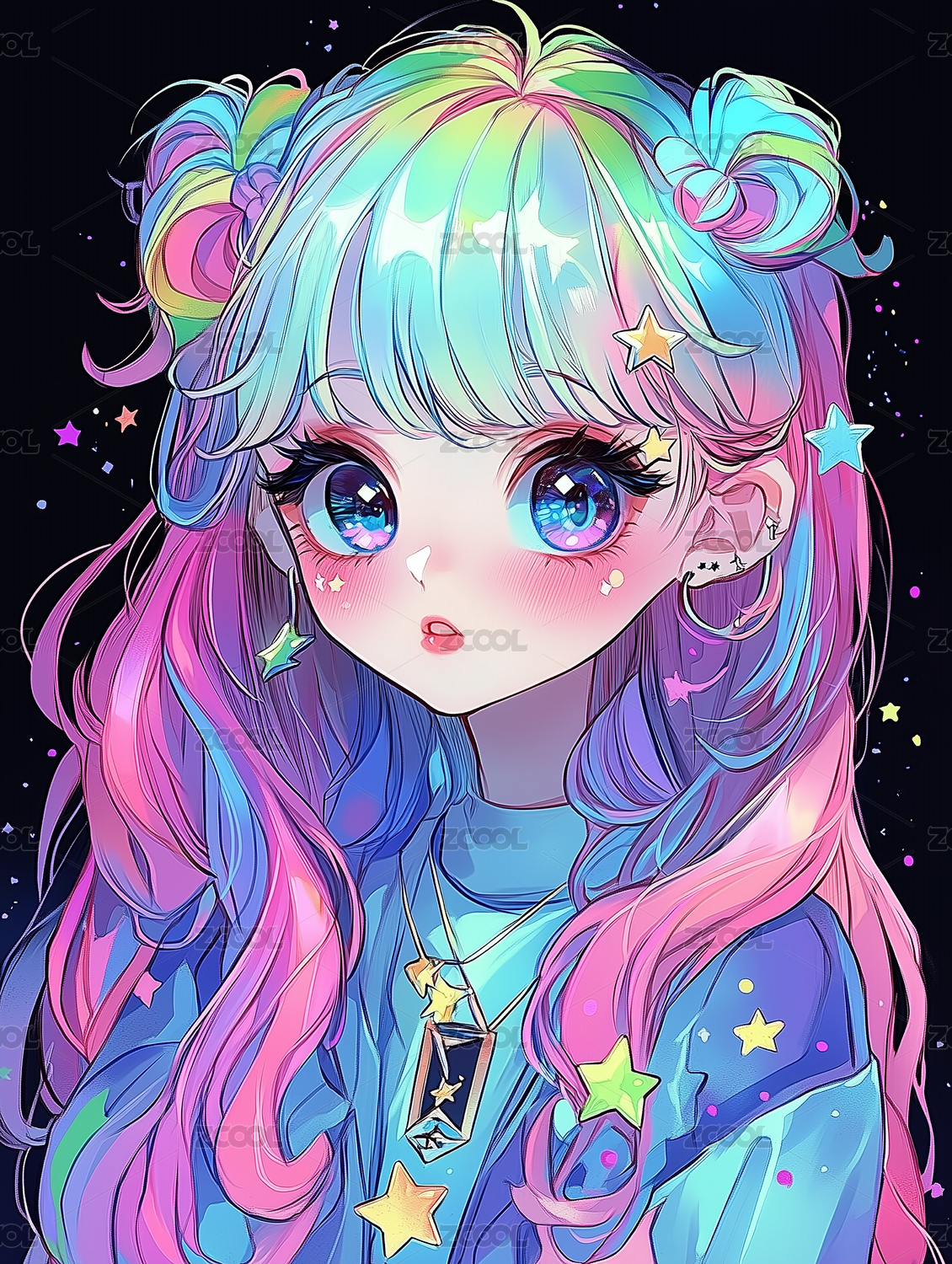 少女,彩虹,梦幻,可爱,甜美,星星,爱心,闪耀,光芒,卡通