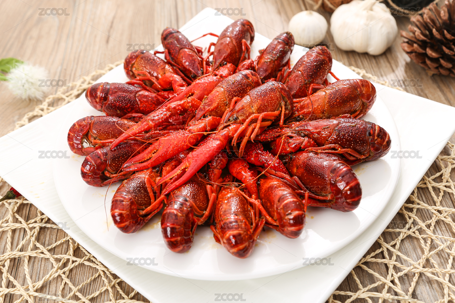 小龙虾,美食,木桌,盘子,大蒜,筷子,食材,餐饮,麻辣小龙虾,香辣龙虾