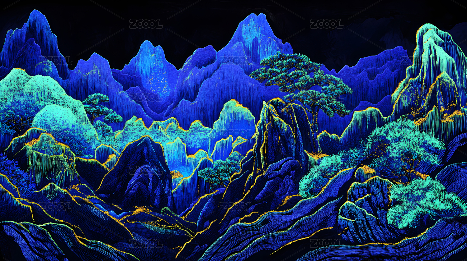 发光山水画的动态夜景
