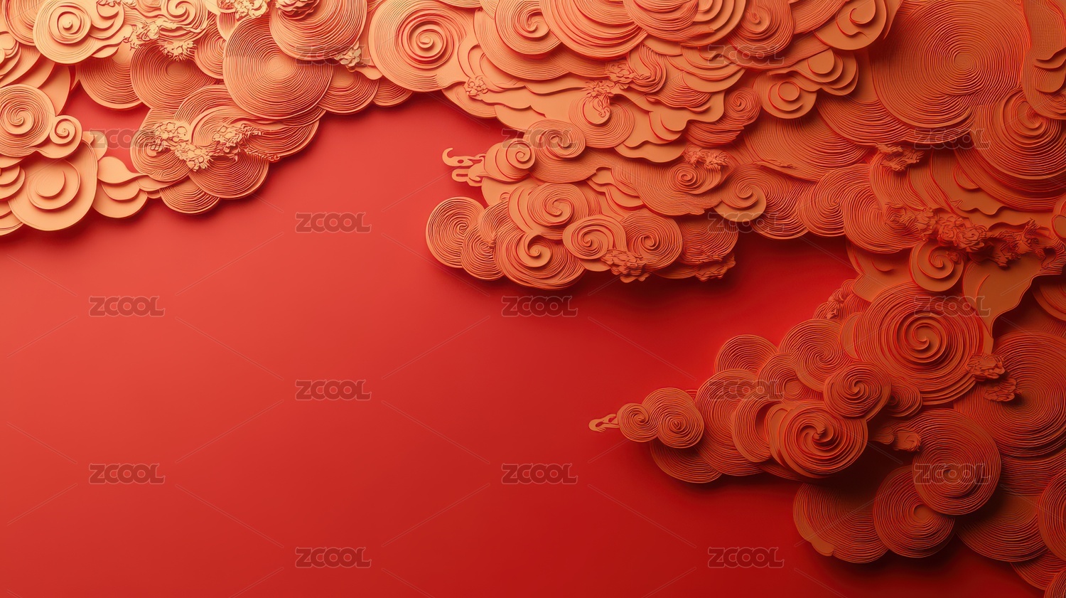 新年春节国潮祥云底纹传统祥云图案红色背景