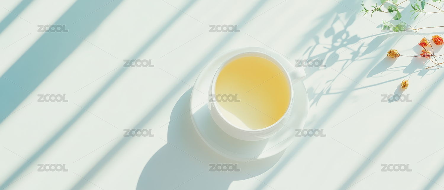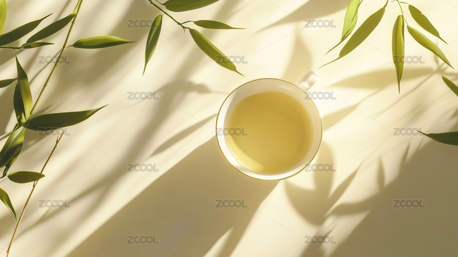 光影,柔和,简约,自然,绿叶,桌面,茶杯,宁静,静物,白菊
