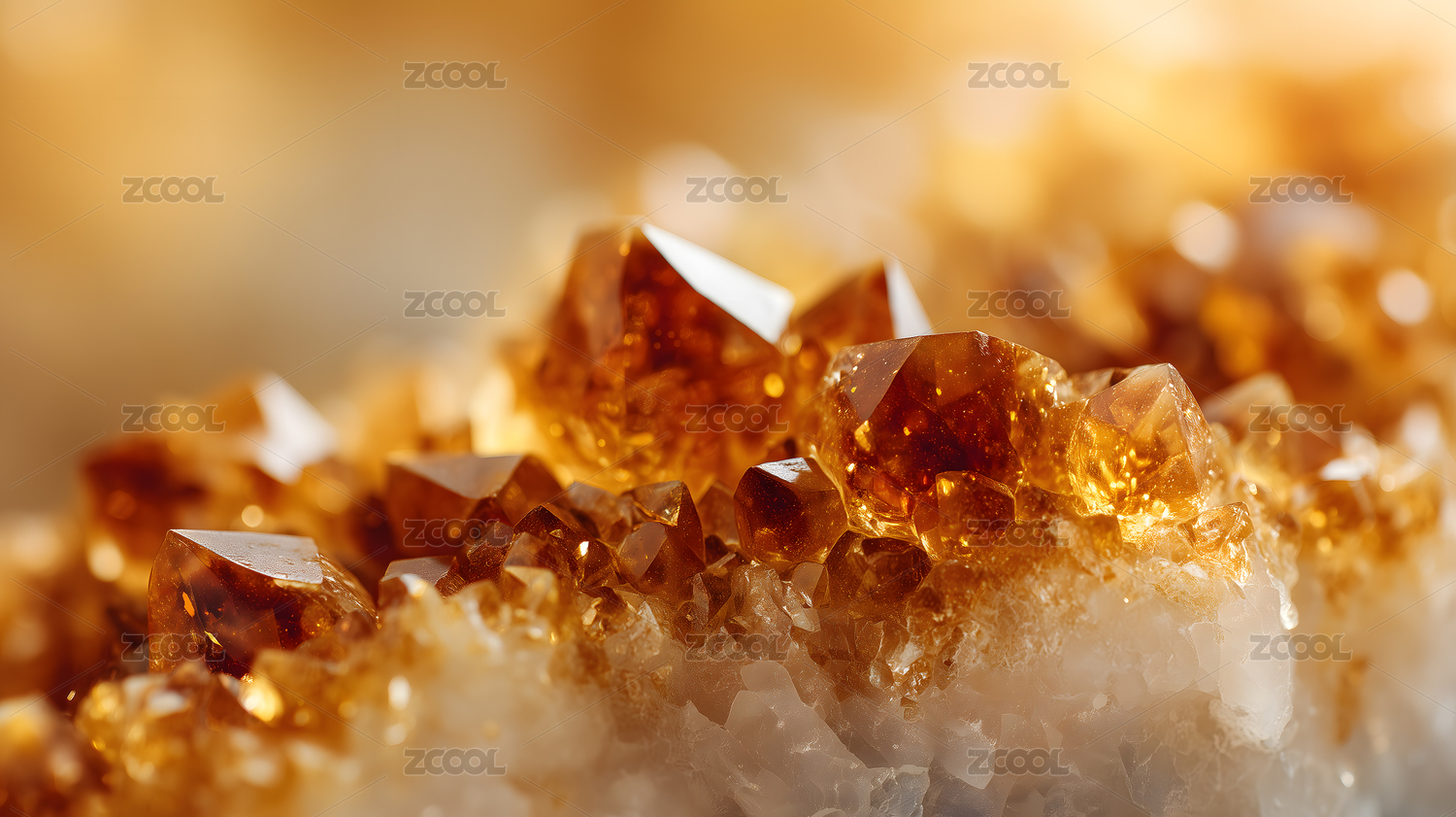 金黄色水晶簇在深蓝背景下的璀璨展示