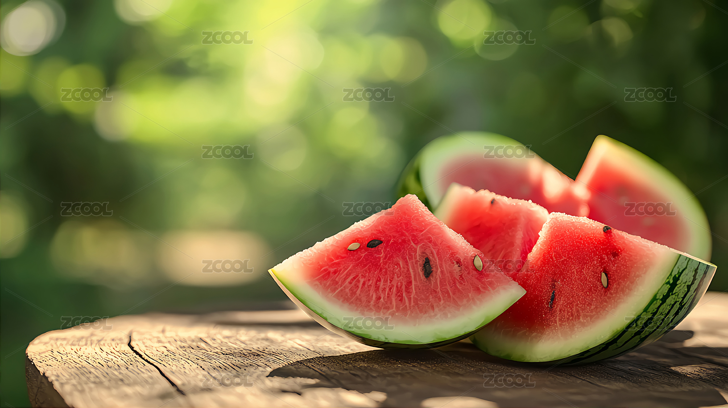 木头桌面上的西瓜