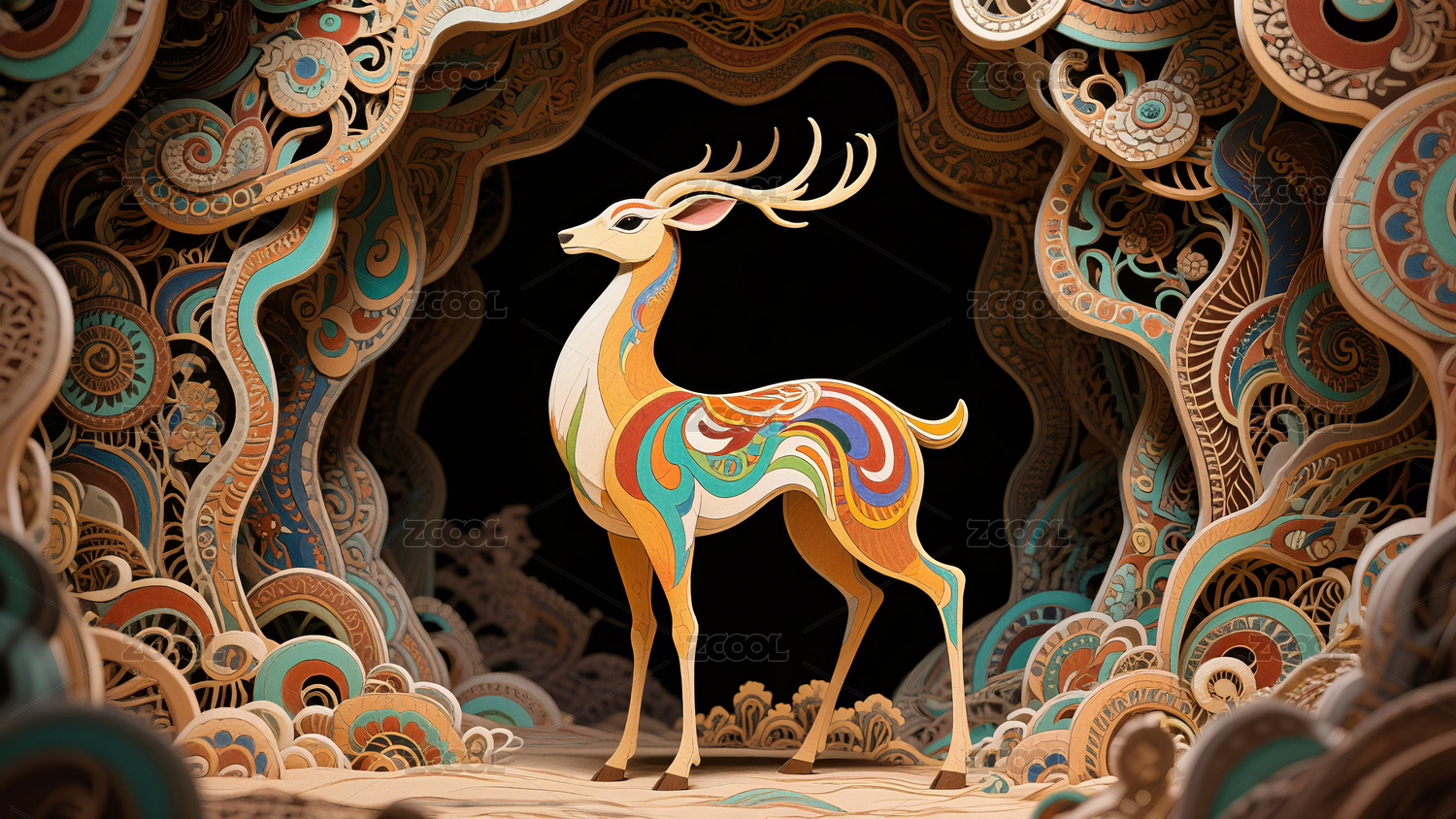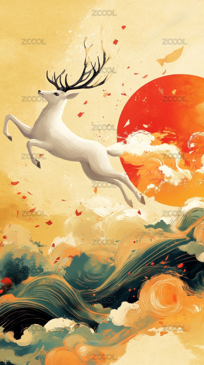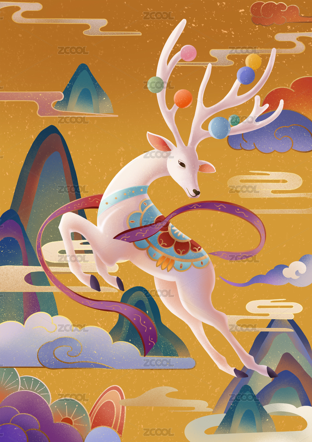 神话,九色鹿,鹿,神鹿,动物,水墨,插画,背景,圣诞节,动画