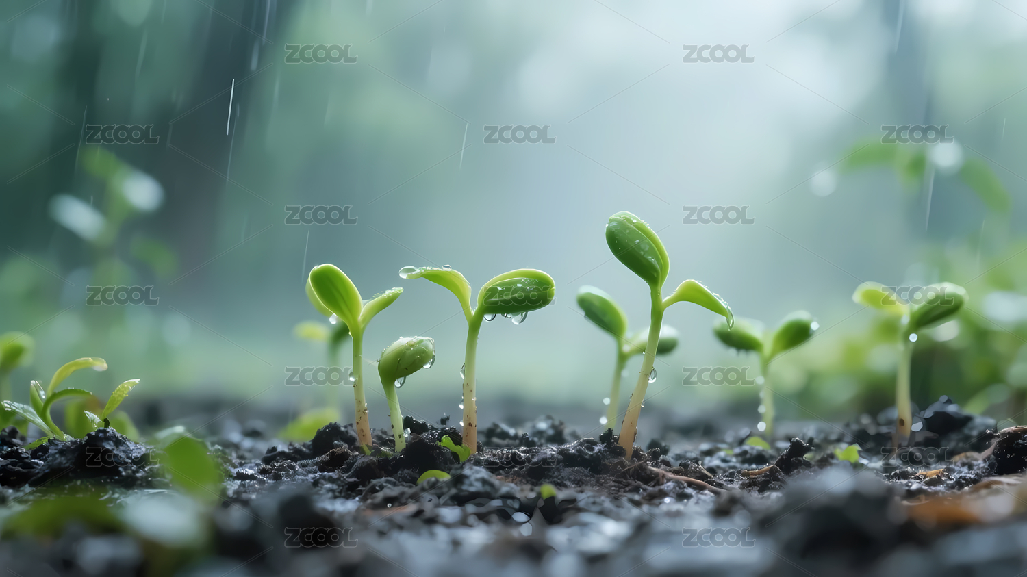 春天雨水节气谷雨种子长出幼苗嫩芽概念插图