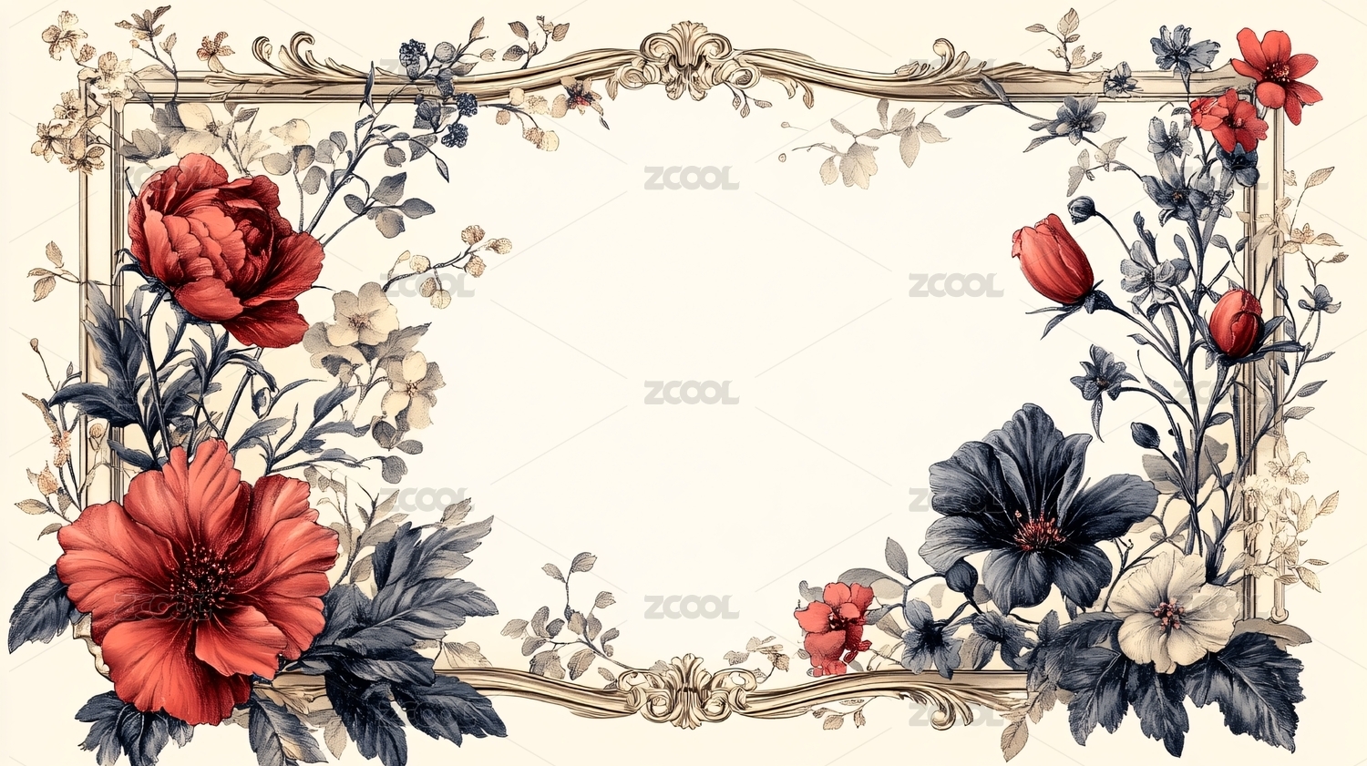 边框,花卉,色彩,线条,叶子,留白,复古,纸张,玫瑰,花苞