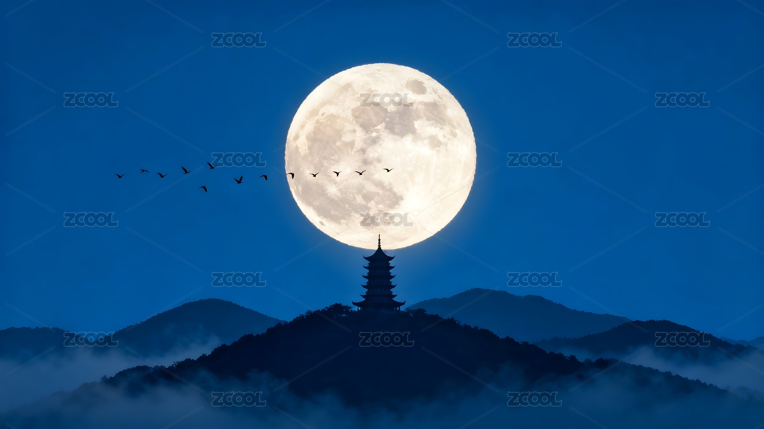 杭州,半山,望宸阁,亭台楼阁,传统的,中秋节,满月,月亮,超级月亮,悬月
