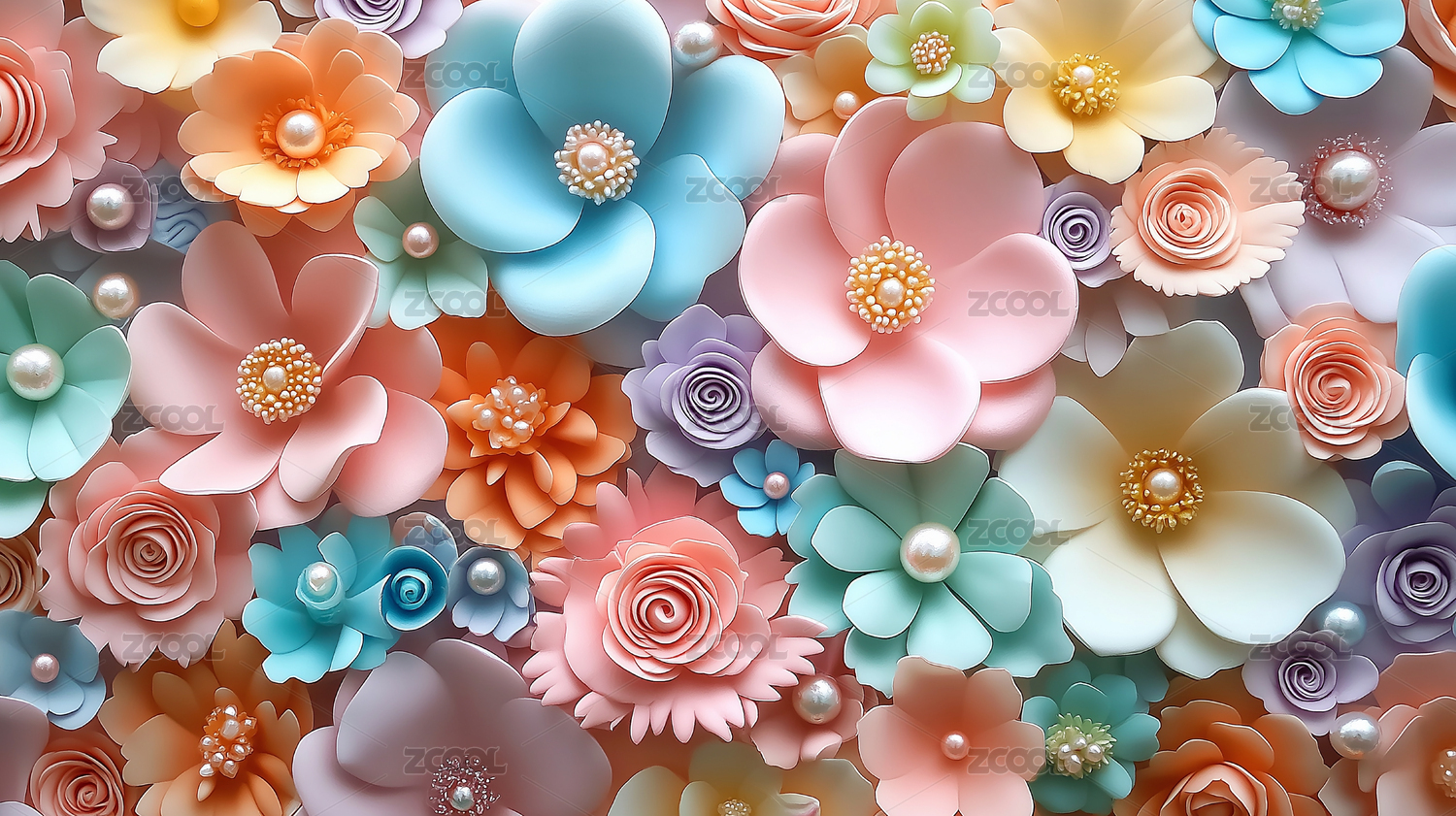 3D,花卉,设计,印花,花朵,立体感,金属,质感,彩色,粉花