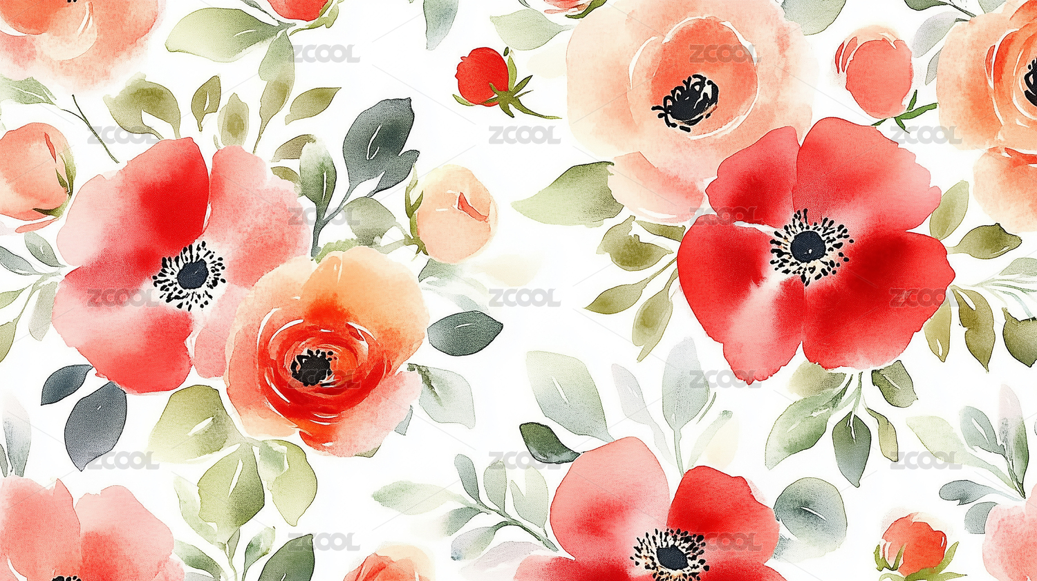 水彩,花卉,花朵,花型,花布,设计,艺术,风格,白底,彩色