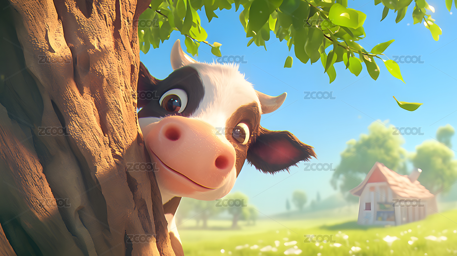 动物,可爱,卡通,插画,设计,农场,微笑,云朵,天空,白色