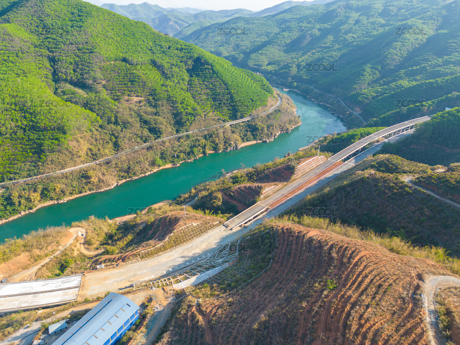 航拍澜沧江和公路