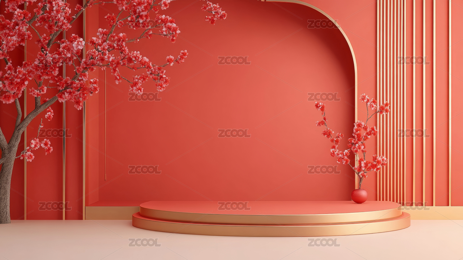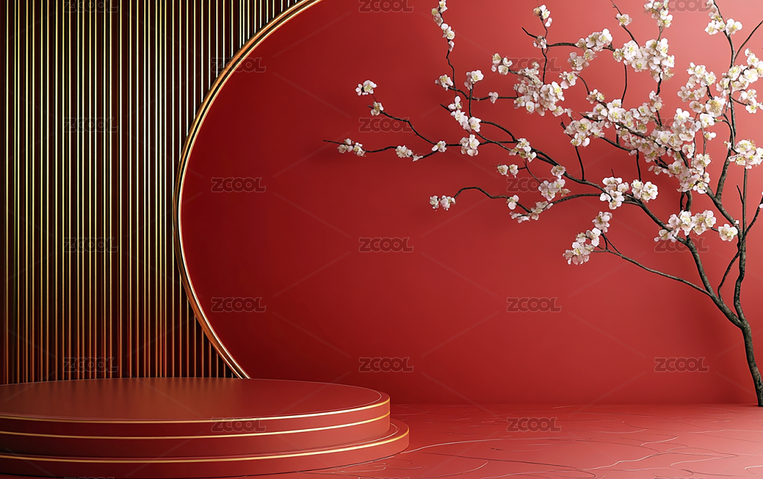 红色,舞台,梅花,装饰,中式,灯笼,室内,场景,传统,元素