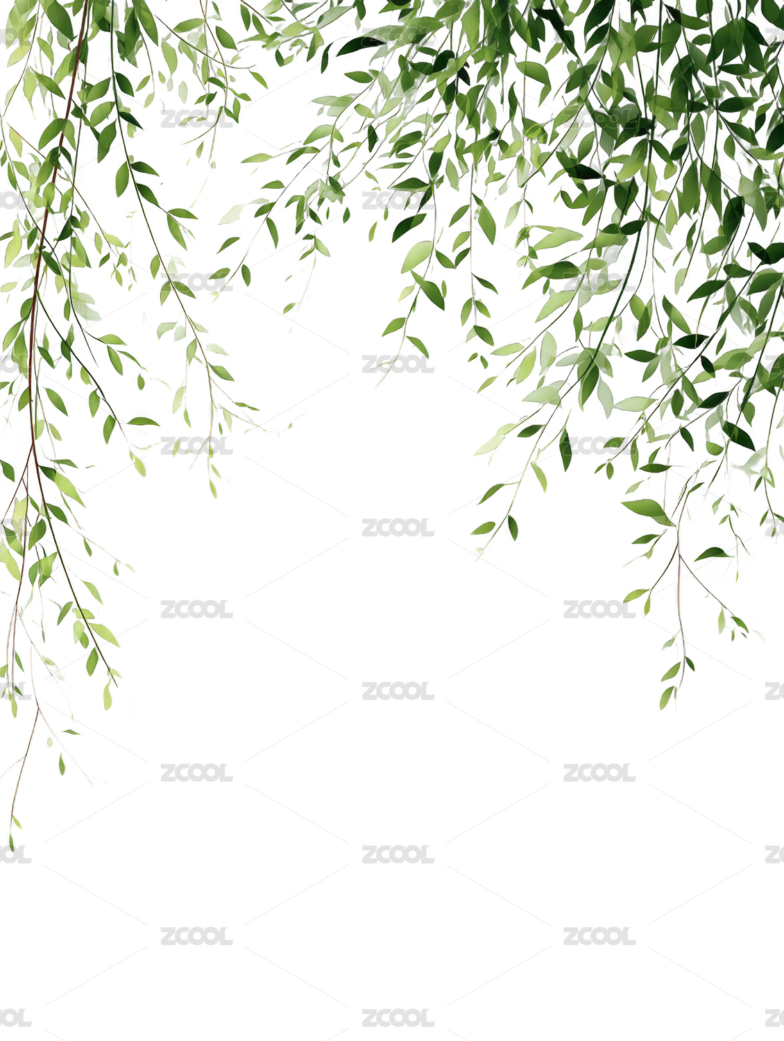 垂落的绿色枝叶水彩图案