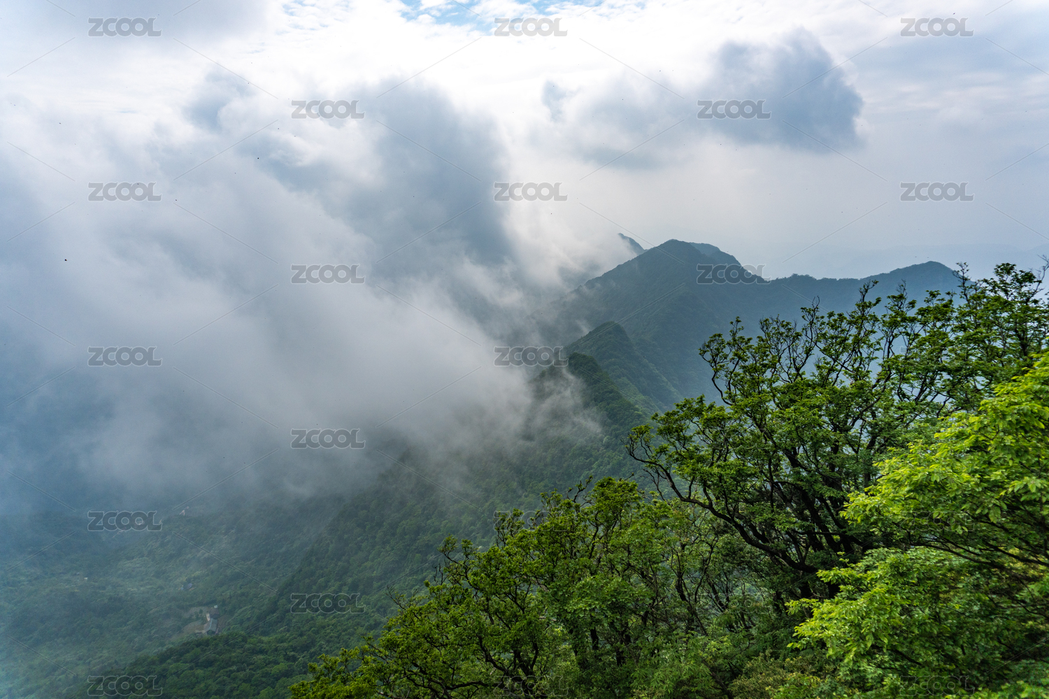 中国四川眉山洪雅瓦屋山山顶密林和周边群山