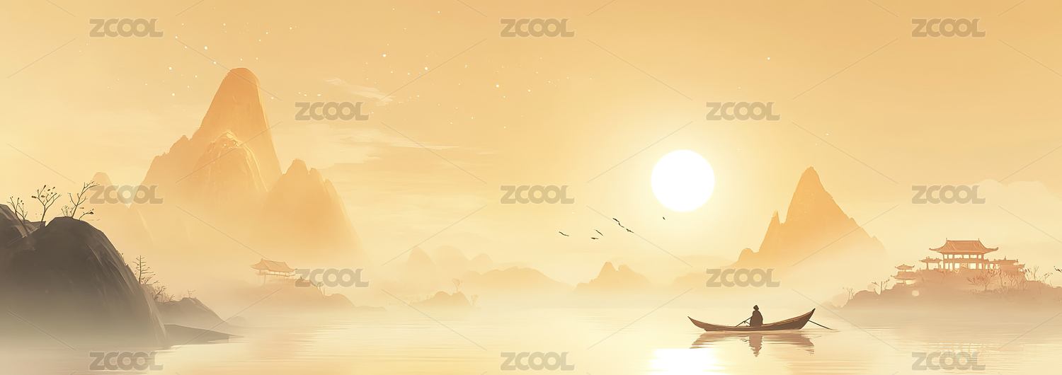 山水,插画,意境,山峰,风景,远山,背景,建筑,自然,景观