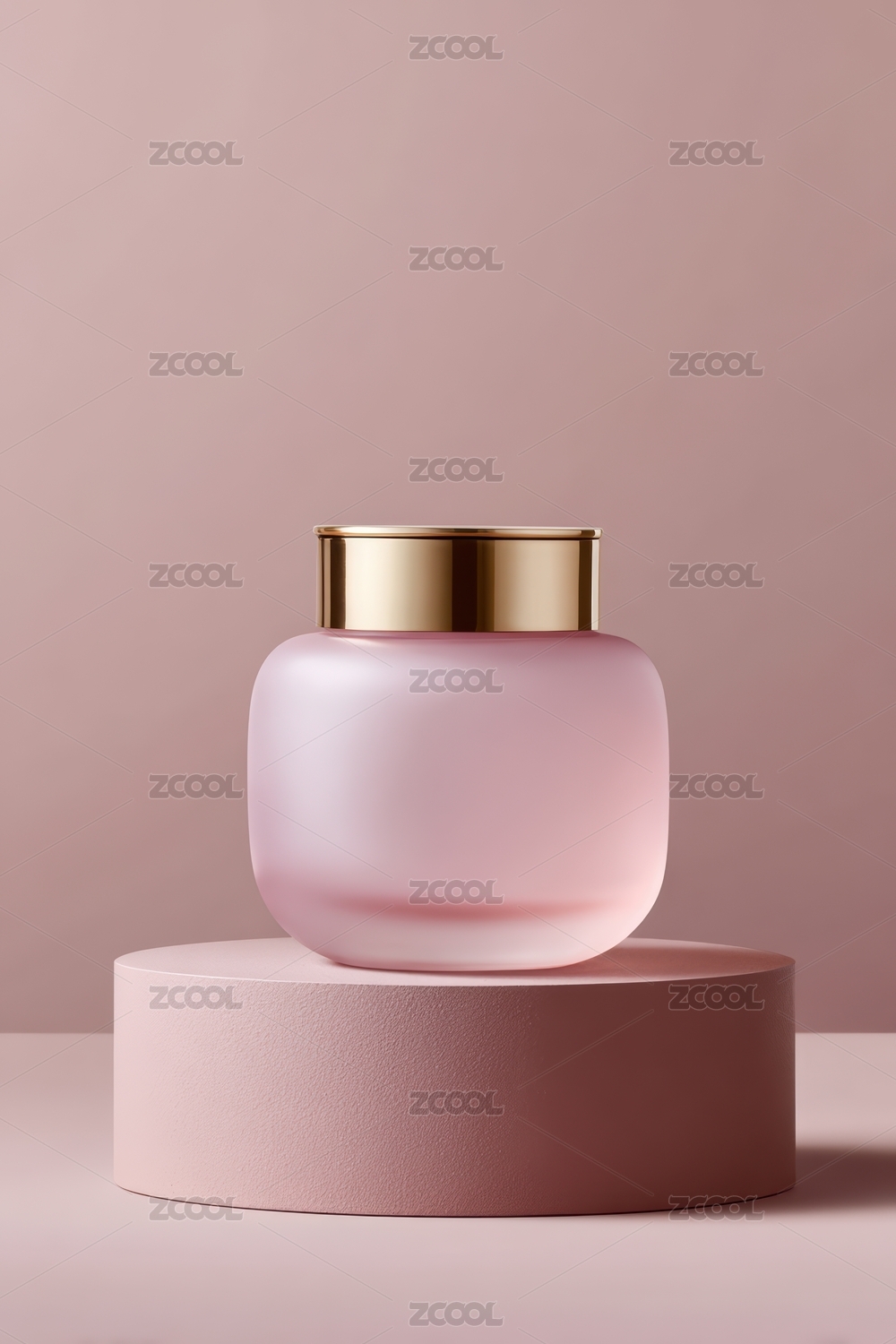 简约粉色玻璃瓶与金色盖子的静物展示