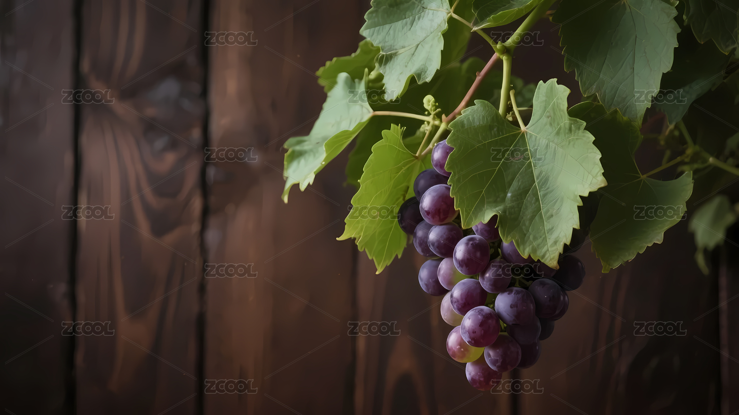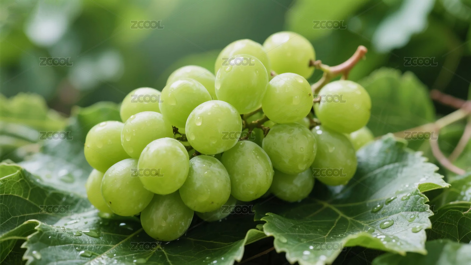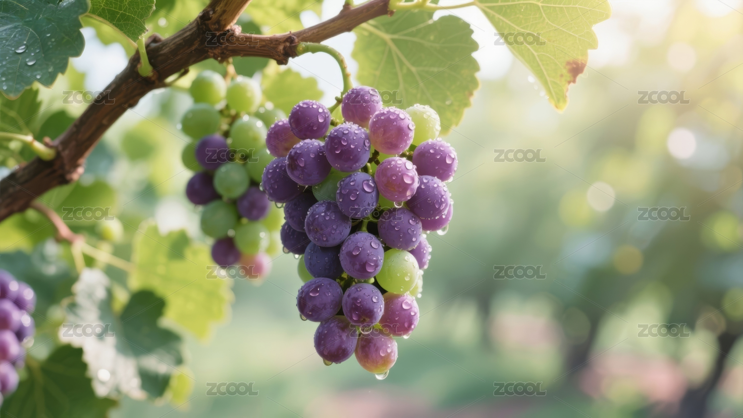 葡萄藤上悬吊着尚未成熟的葡萄串
