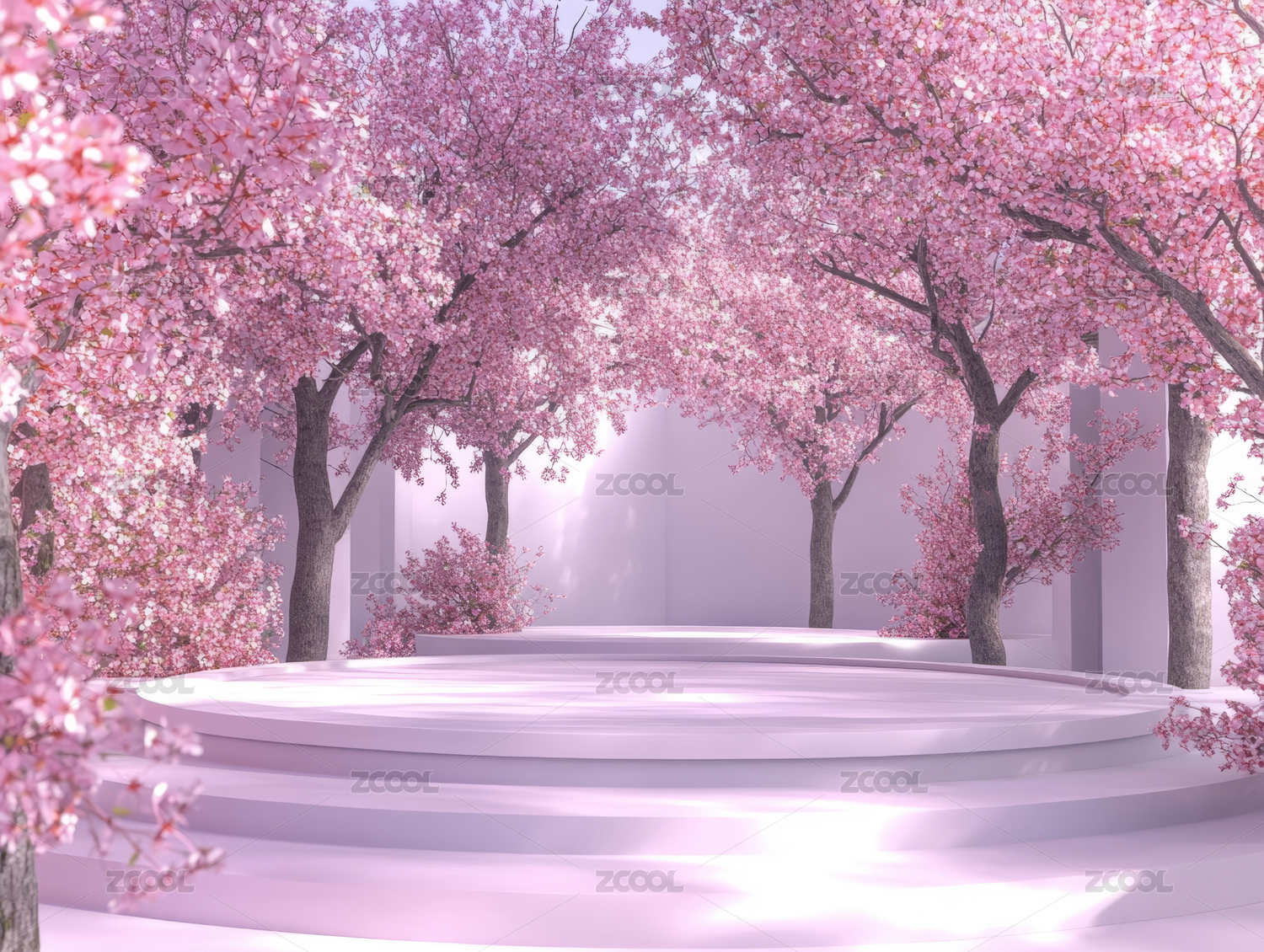 紫色,讲台,半圆,花朵,盛开,骨朵,渐变,梦幻,背景