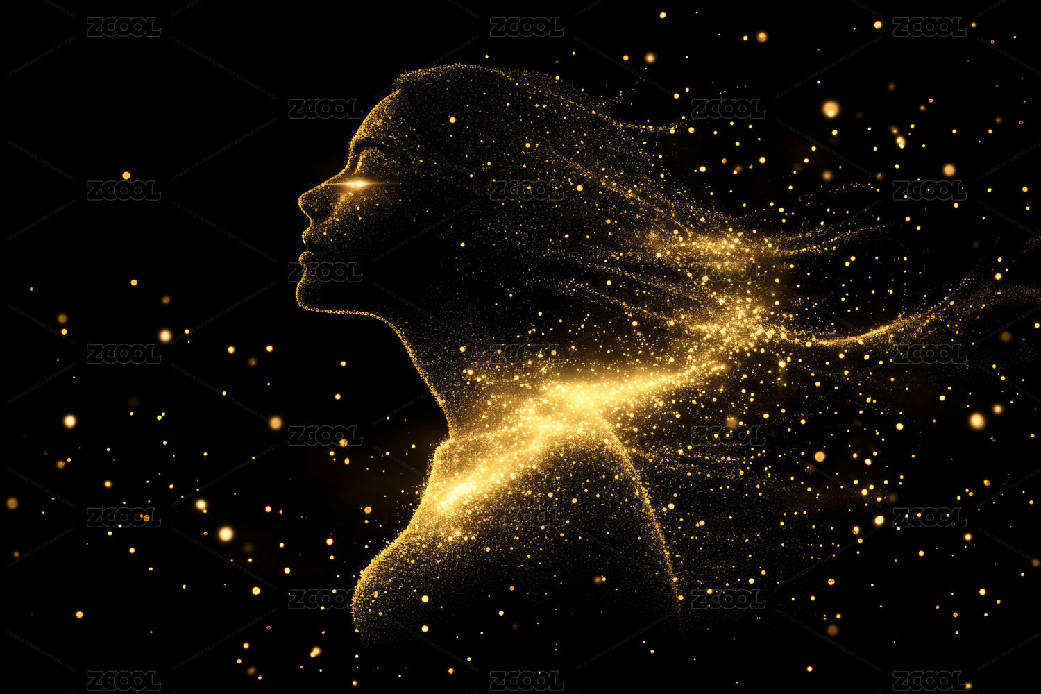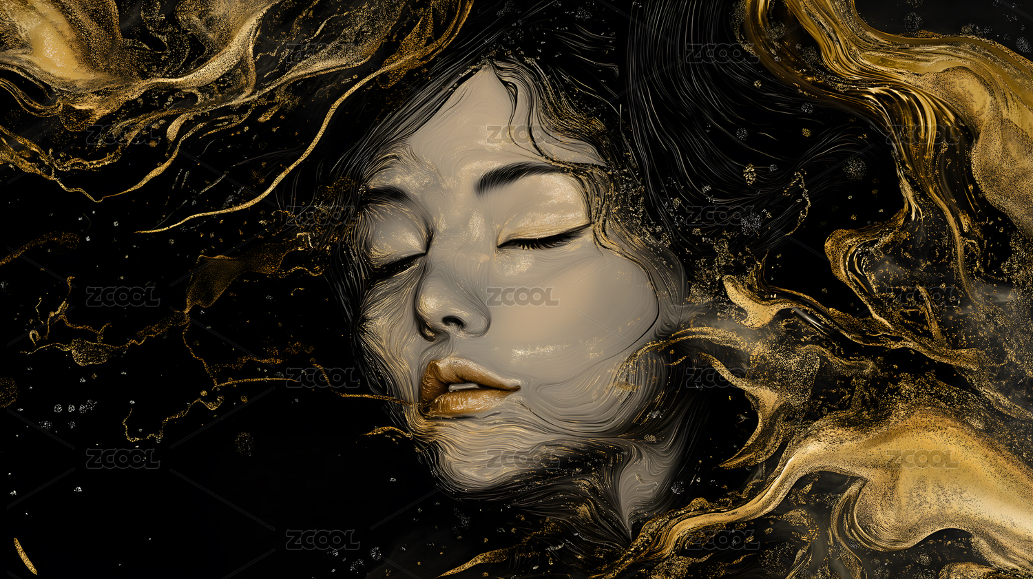 超现实,肖像,女性,金色,抽象,优雅,神秘,艺术,奢华