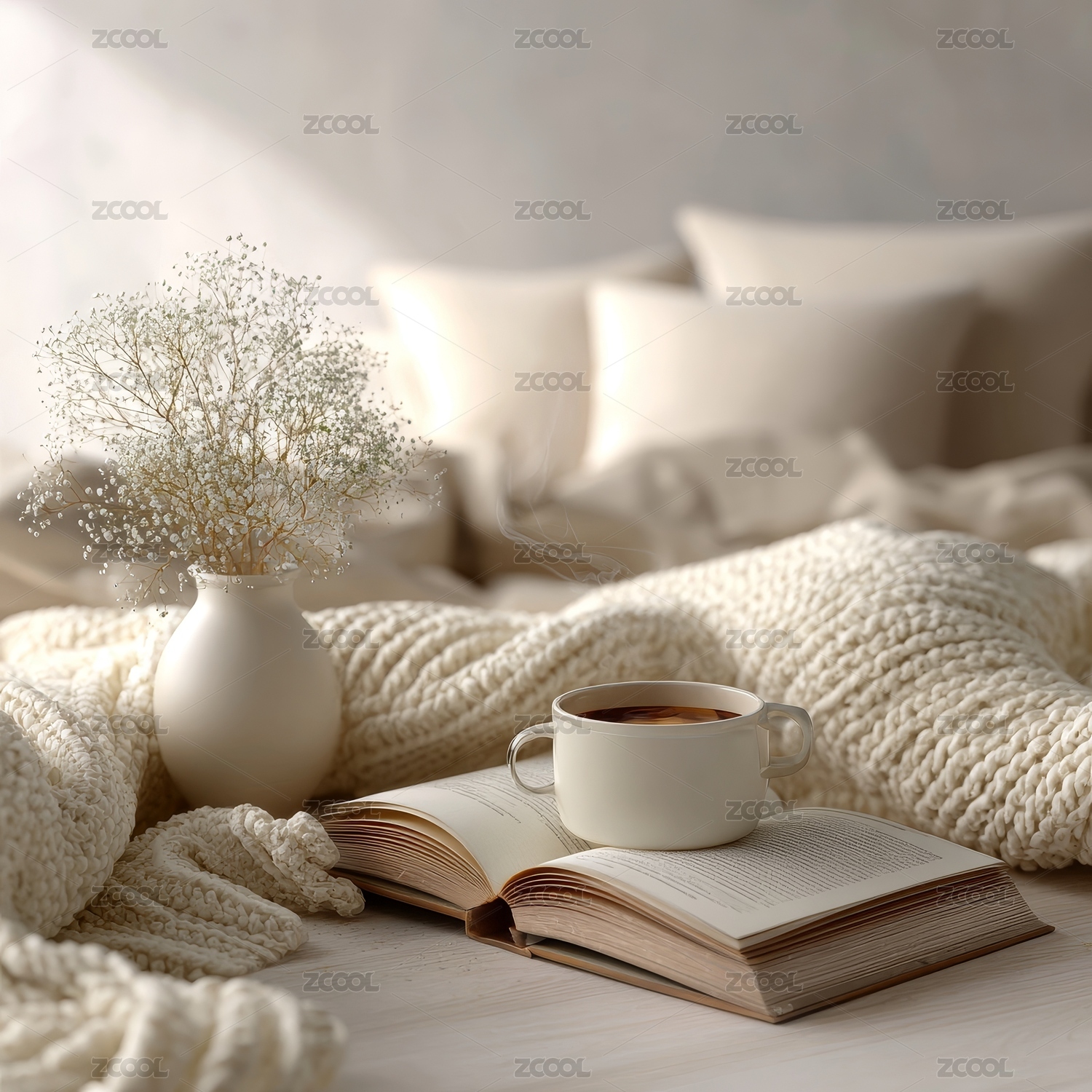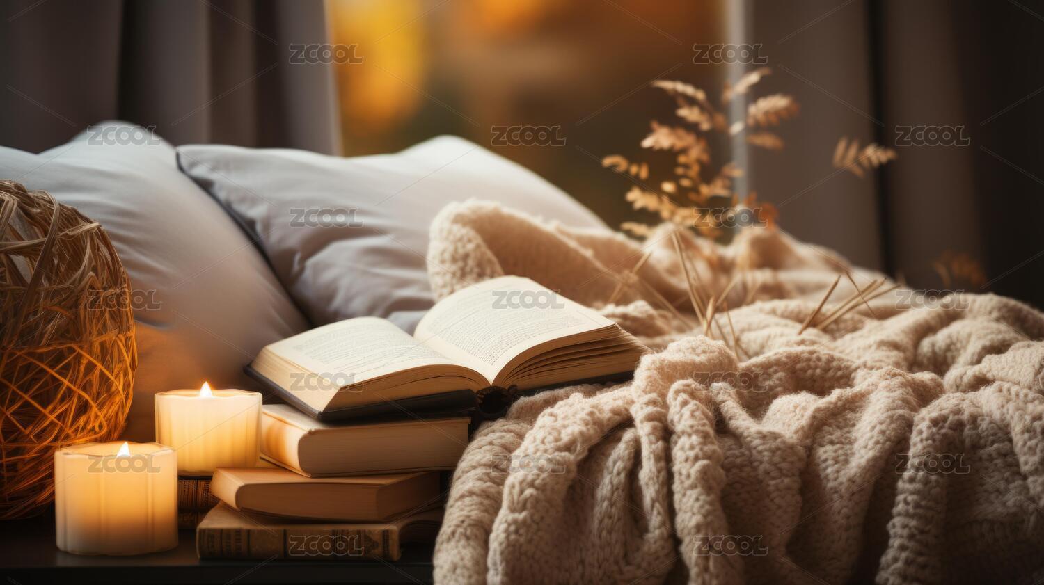 蜡烛一本书和一个枕头营造的舒适家居装饰