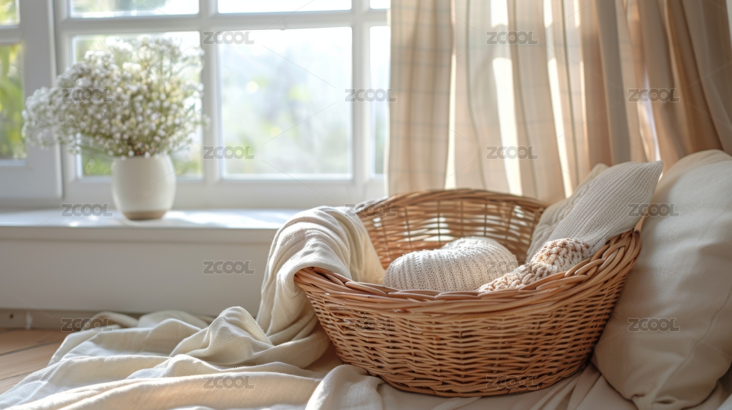 温馨卧室里的婴儿车,母婴毛纺商品展示场景