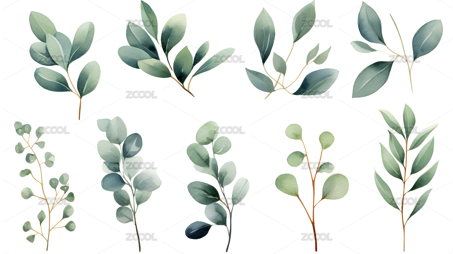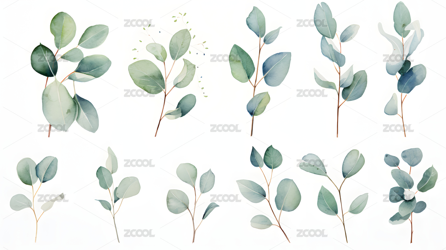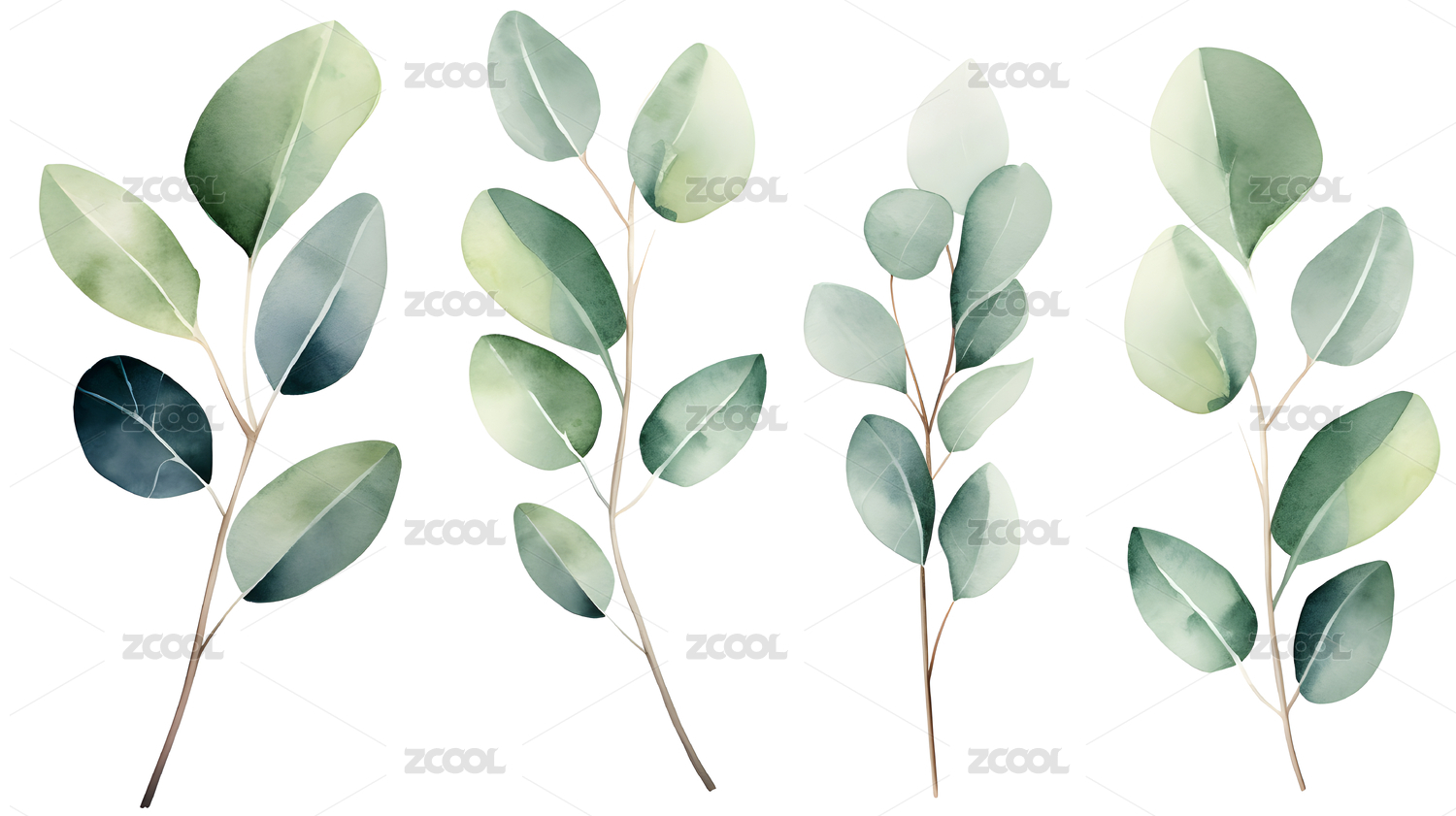 数码水彩尤加利叶装饰抽象图形海报网页背景