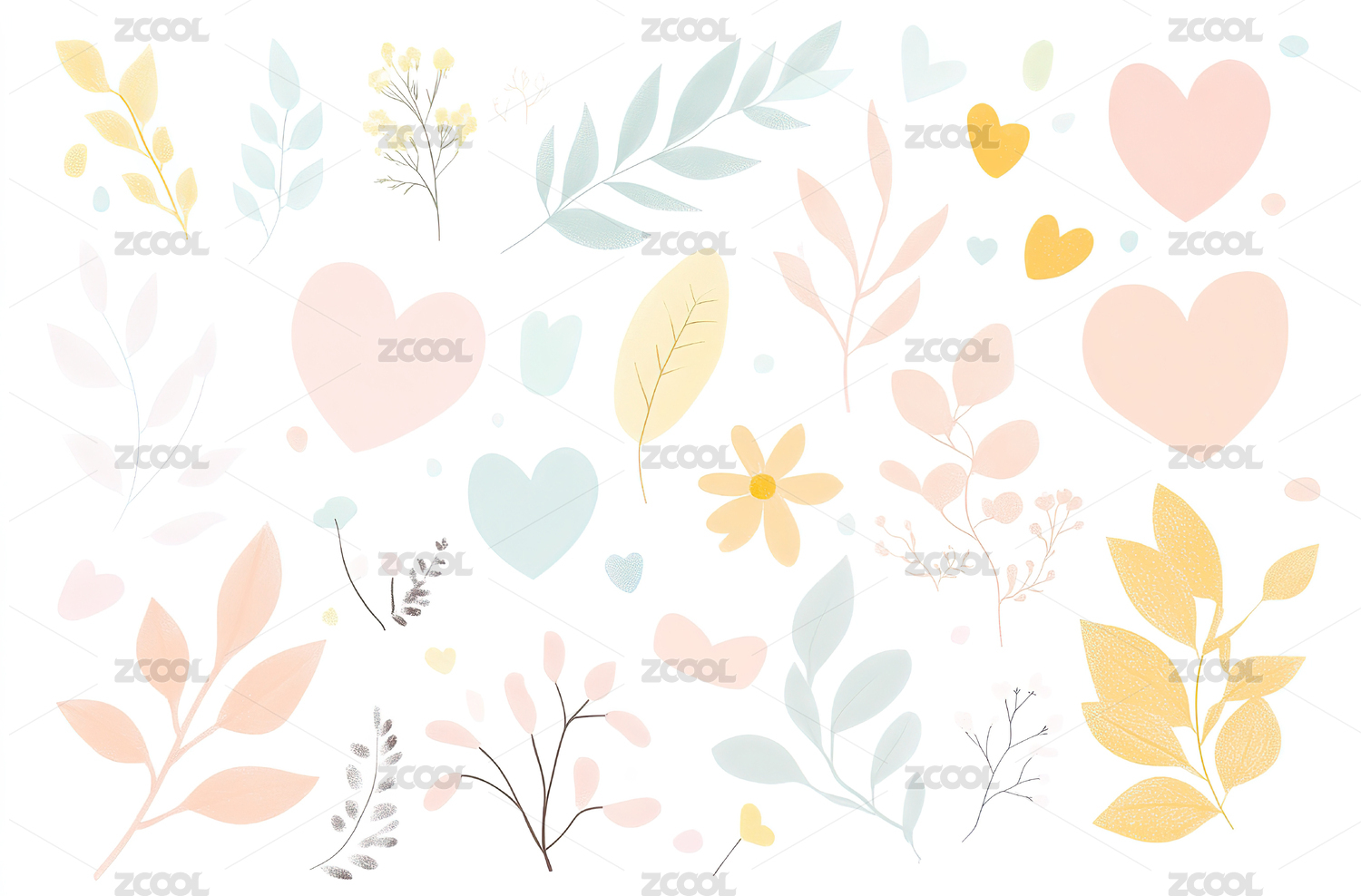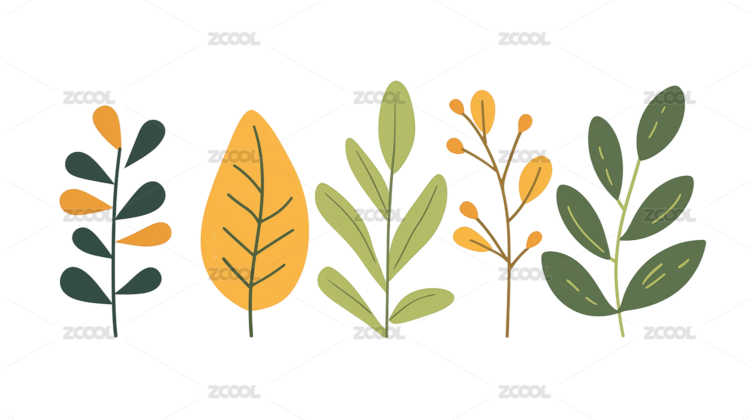 手绘水彩植物插画素材