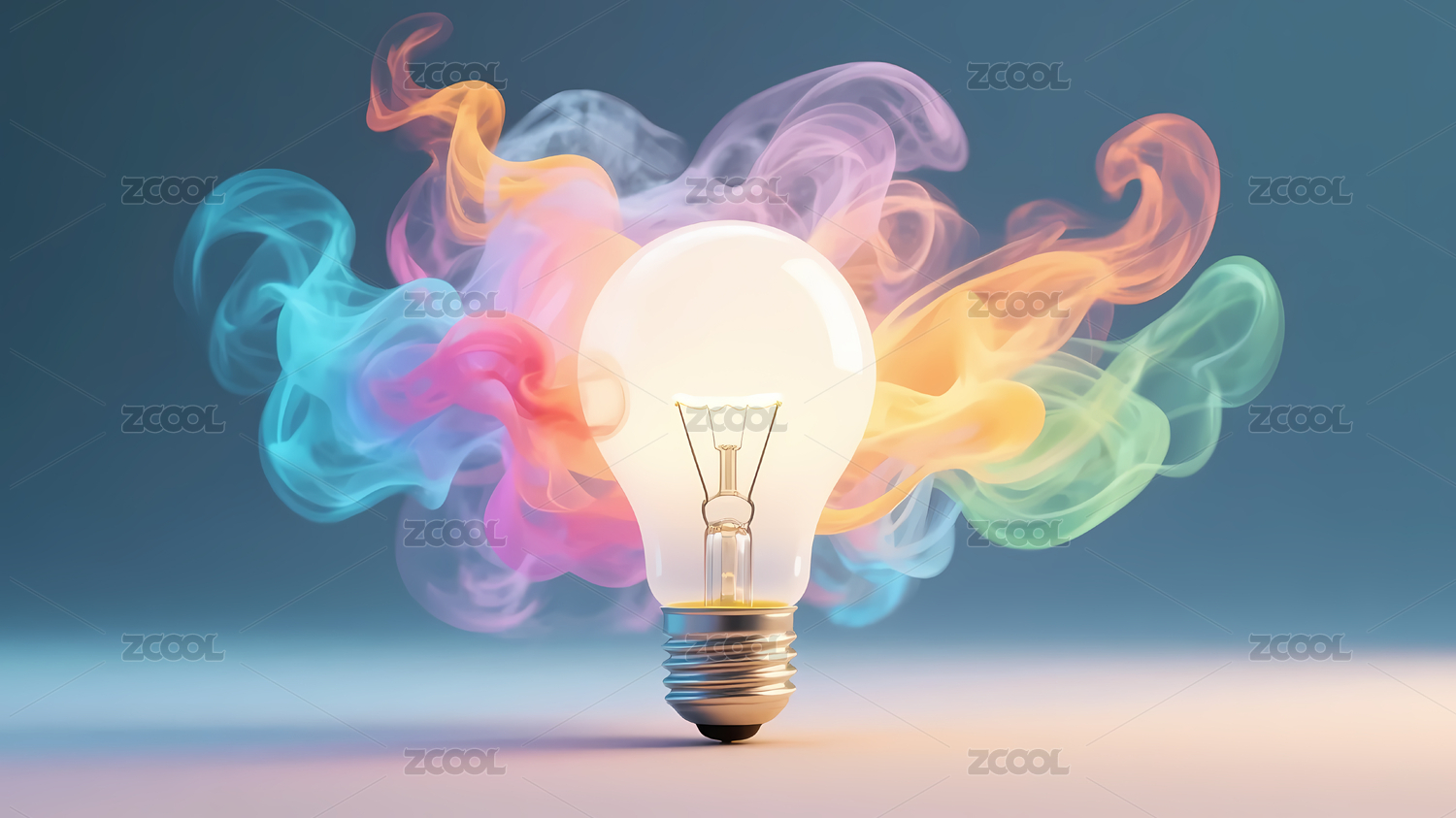 灯泡,发光,黄色,白色,创意,插画,艺术,深蓝色,光点,抽象