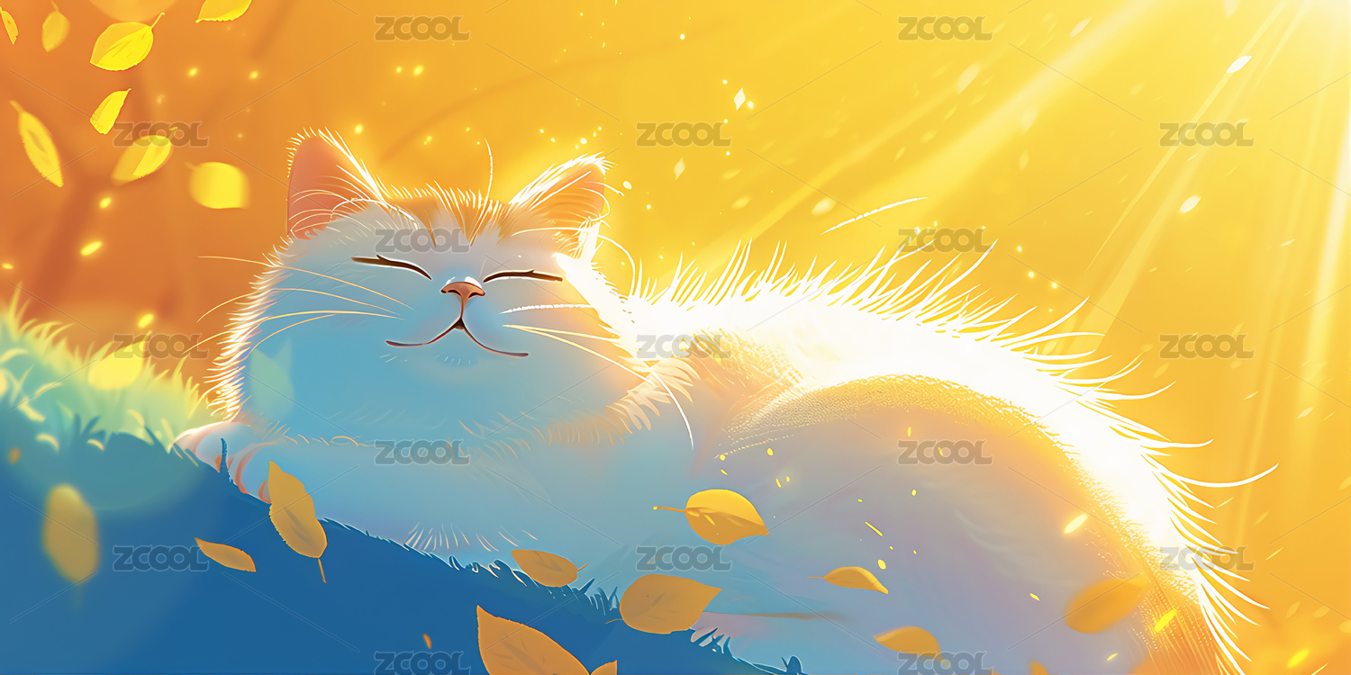 阳光,树叶,落叶,金色,秋天,动物,猫,可爱风,3D,卡通