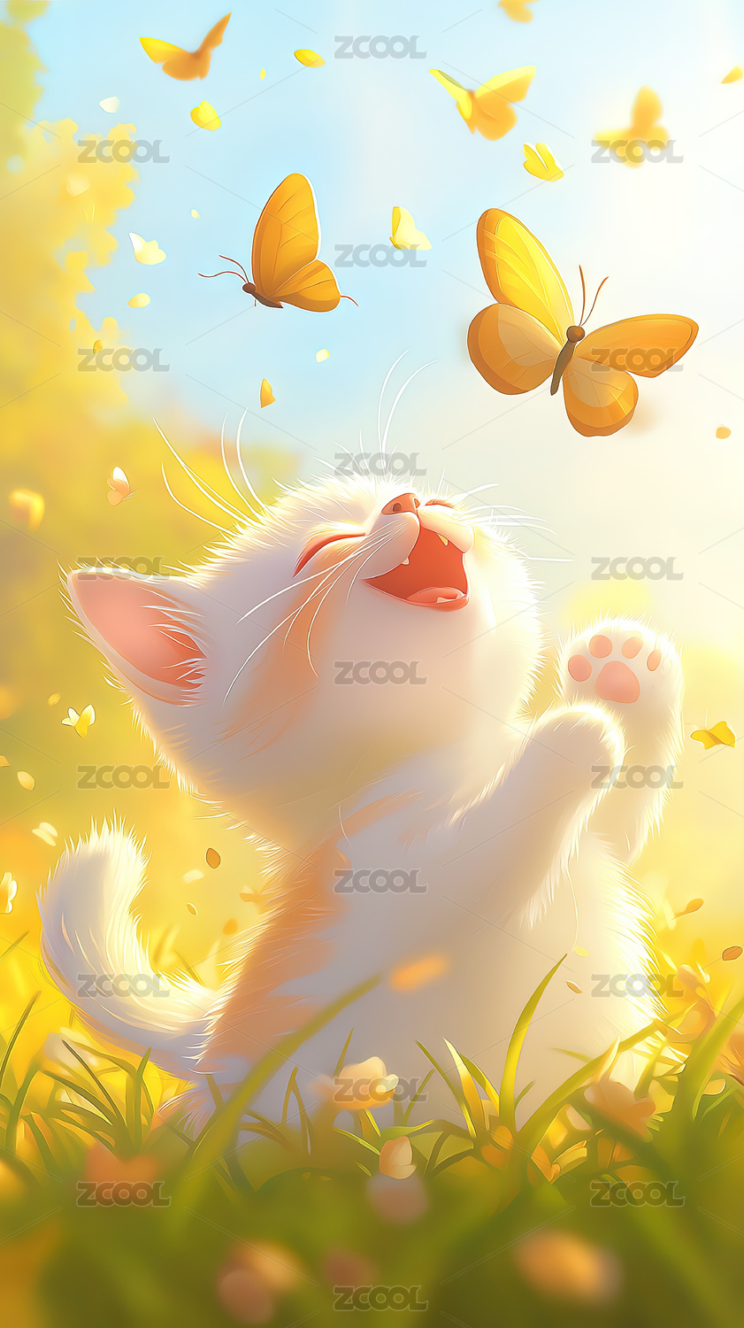 快乐猫咪与花海蝴蝶