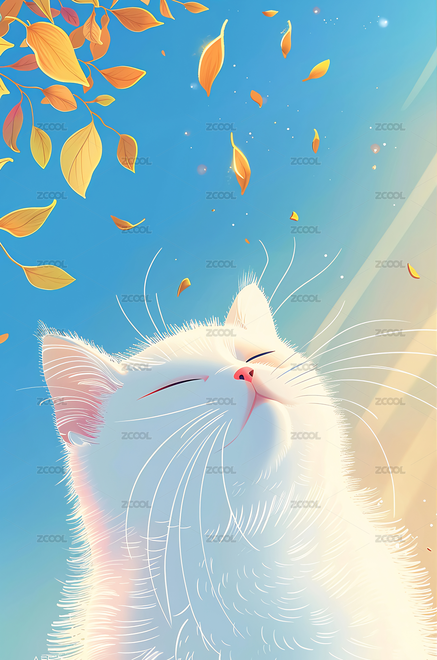晒太阳的白猫插画