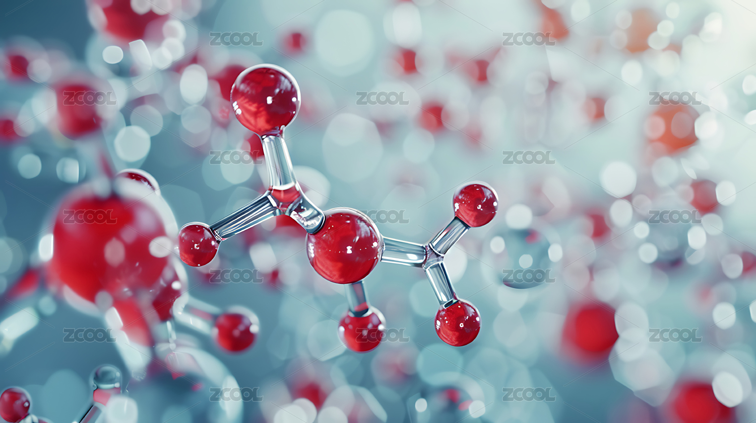 分子结构透明质感红色背景