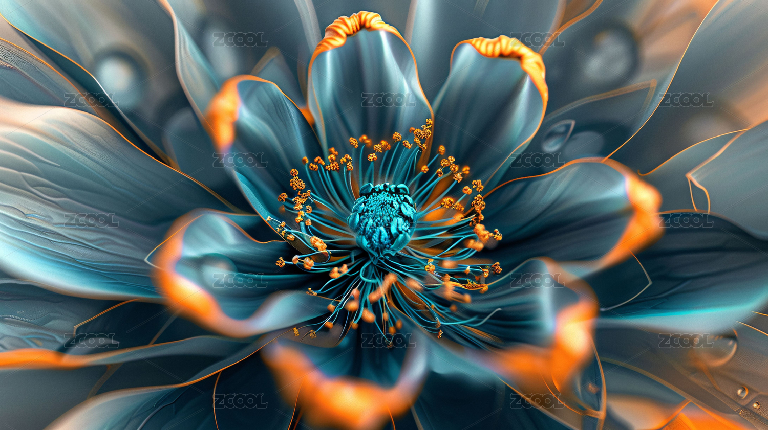 冰蓝梦幻花卉的艺术展示