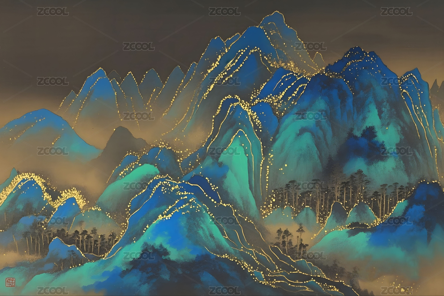 红日,梦幻,红色,国风,中式,山峦,山川,山脉,水墨风格,背景