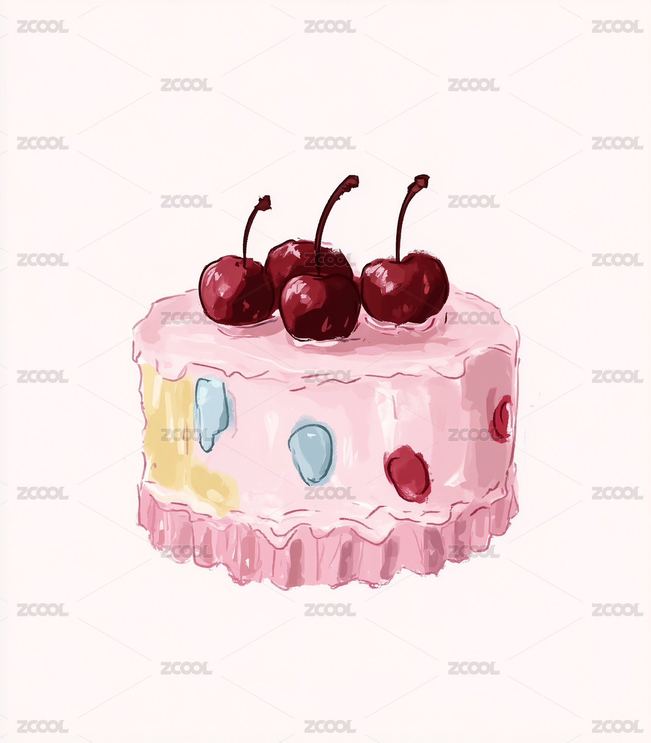 草莓奶油粉色蛋糕插画