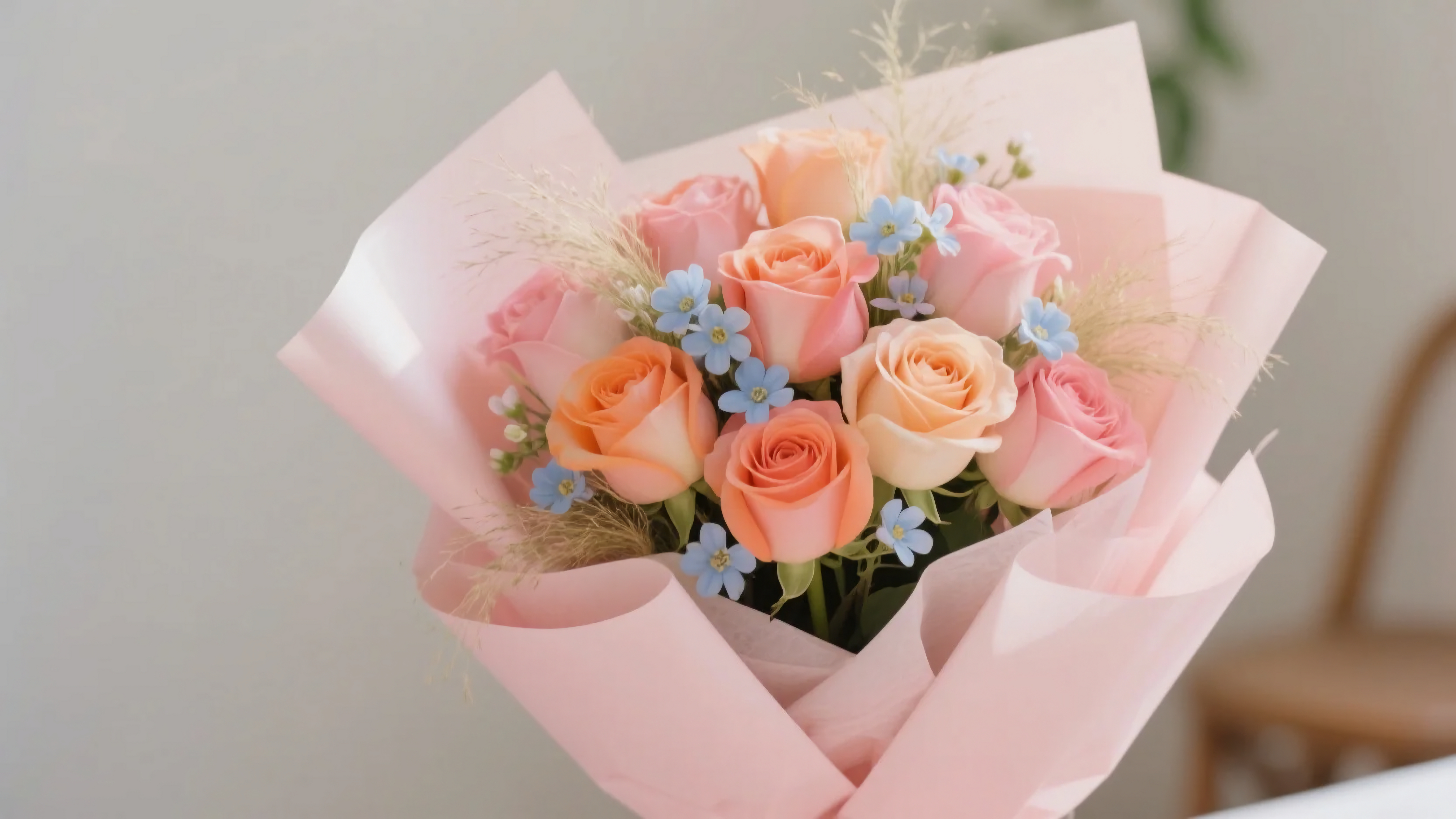 唯美的粉橘色玫瑰花束