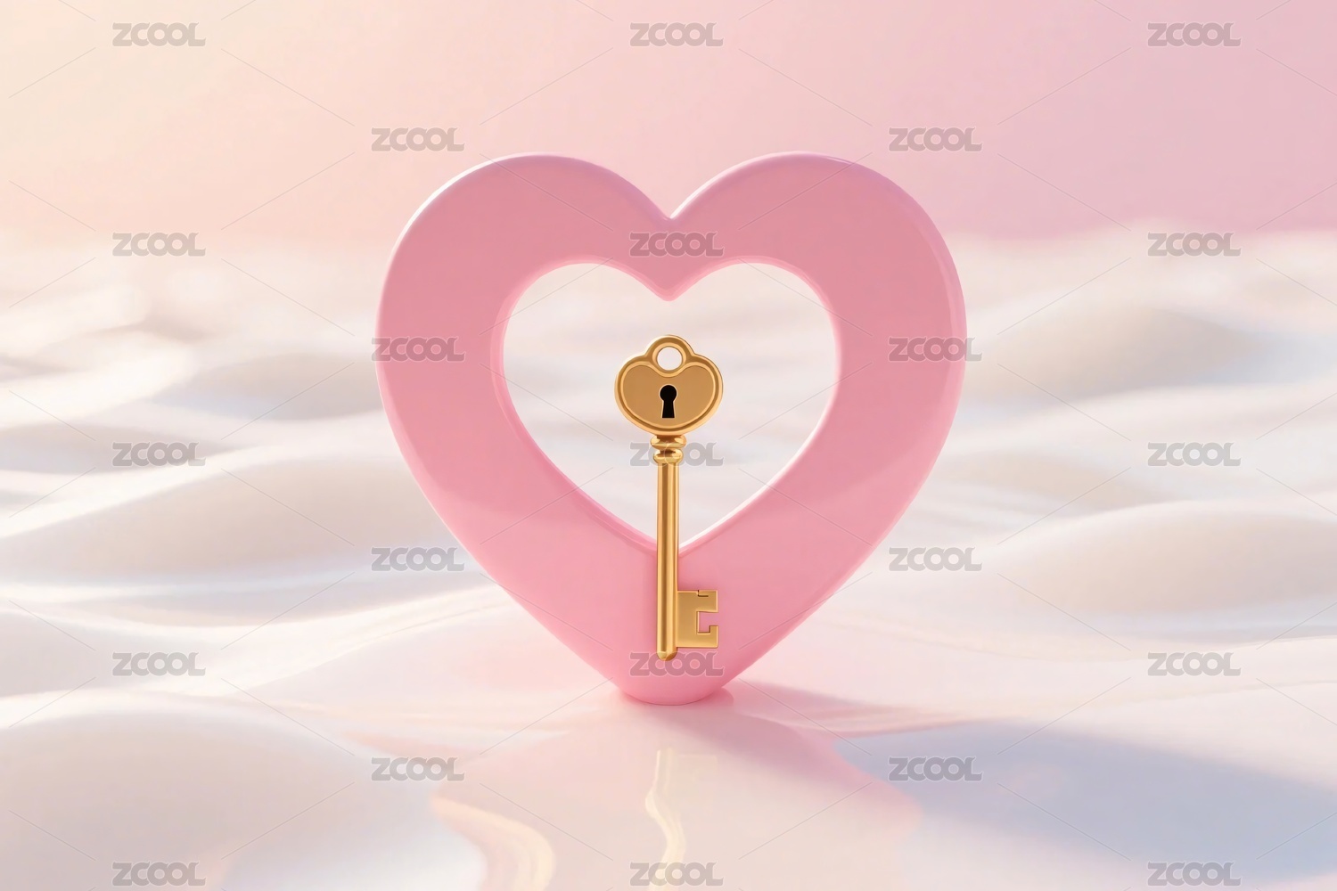 情人节七夕浪漫爱情同心锁钥匙3D立体插画