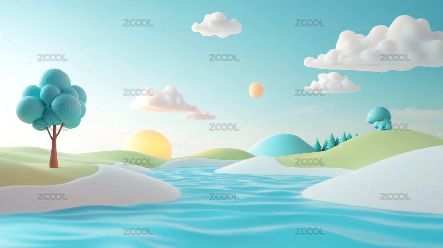 沙滩, 绿色植物, 蓝天, 白云, 石头, 小花, 自然, 和谐